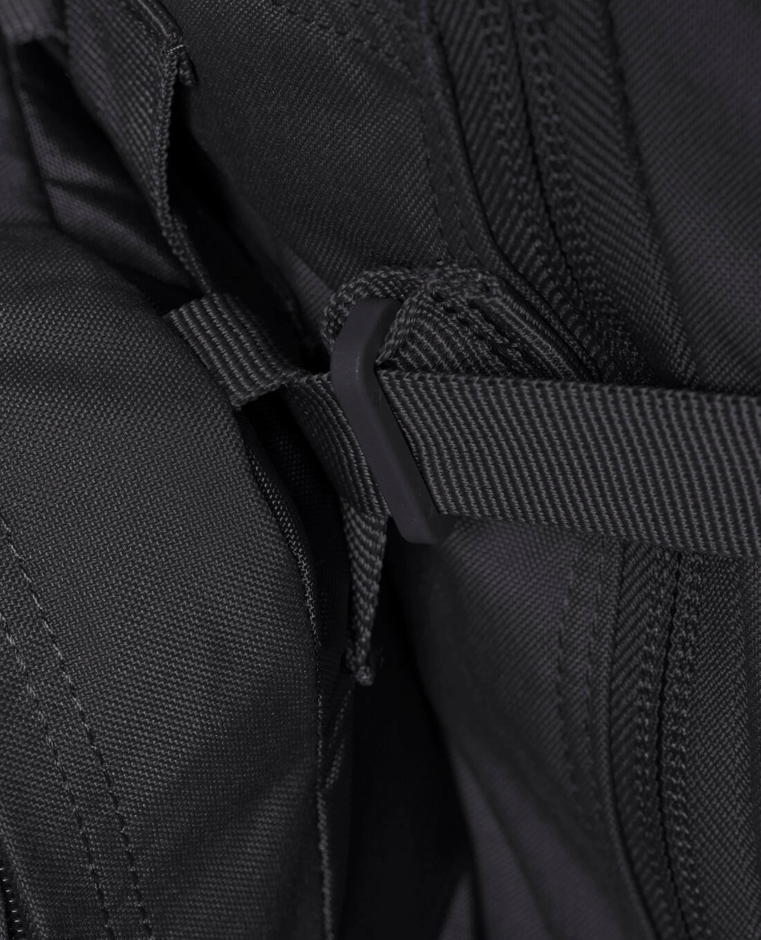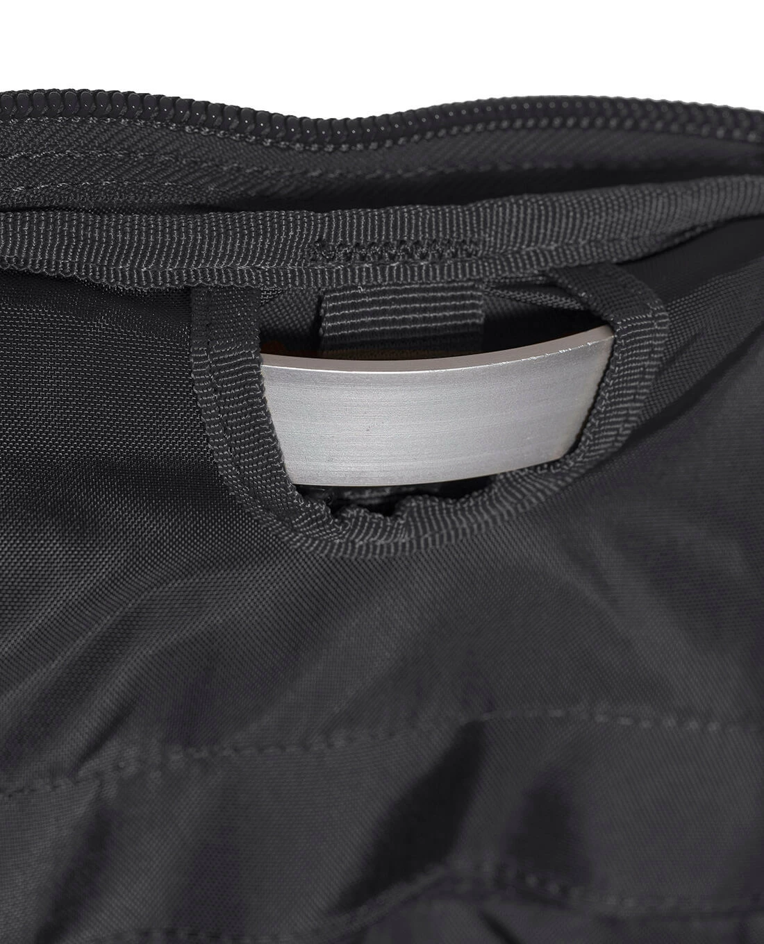 – Untere Gurte und Materialschlaufen zur Kompression, zum Verstauen der Ladung oder als Schultergurt eine der umwandelbaren Seitentasche