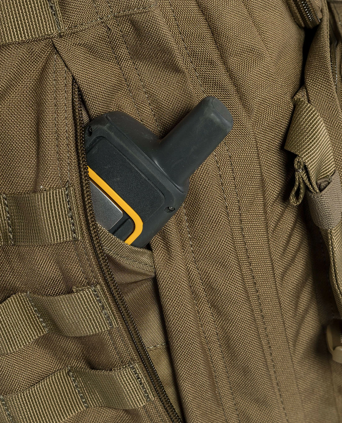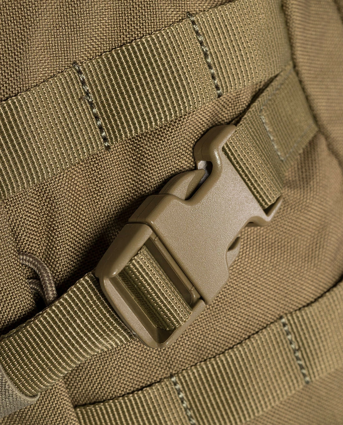 Ob er nun bei Trekking-Trips oder im taktischen Einsatz benutzt wird, die Wasserdichte und besondere Langlebigkeit des CORDURA 1050 den machen ihn zu einen echten Allzweckrucksack, der sich in allen Wetterbedingungen bewährt. Aufgrund seines ergonomisch geformten und gepolsterten Rückenpanels und den gepolsterten Träger ist der Tragekomfort dabei garantiert. Wird mehr Stabilität gewünscht, kann der dünne Brustgurt geschlossen werden, um die beiden Schultergurte zu stabilisieren.