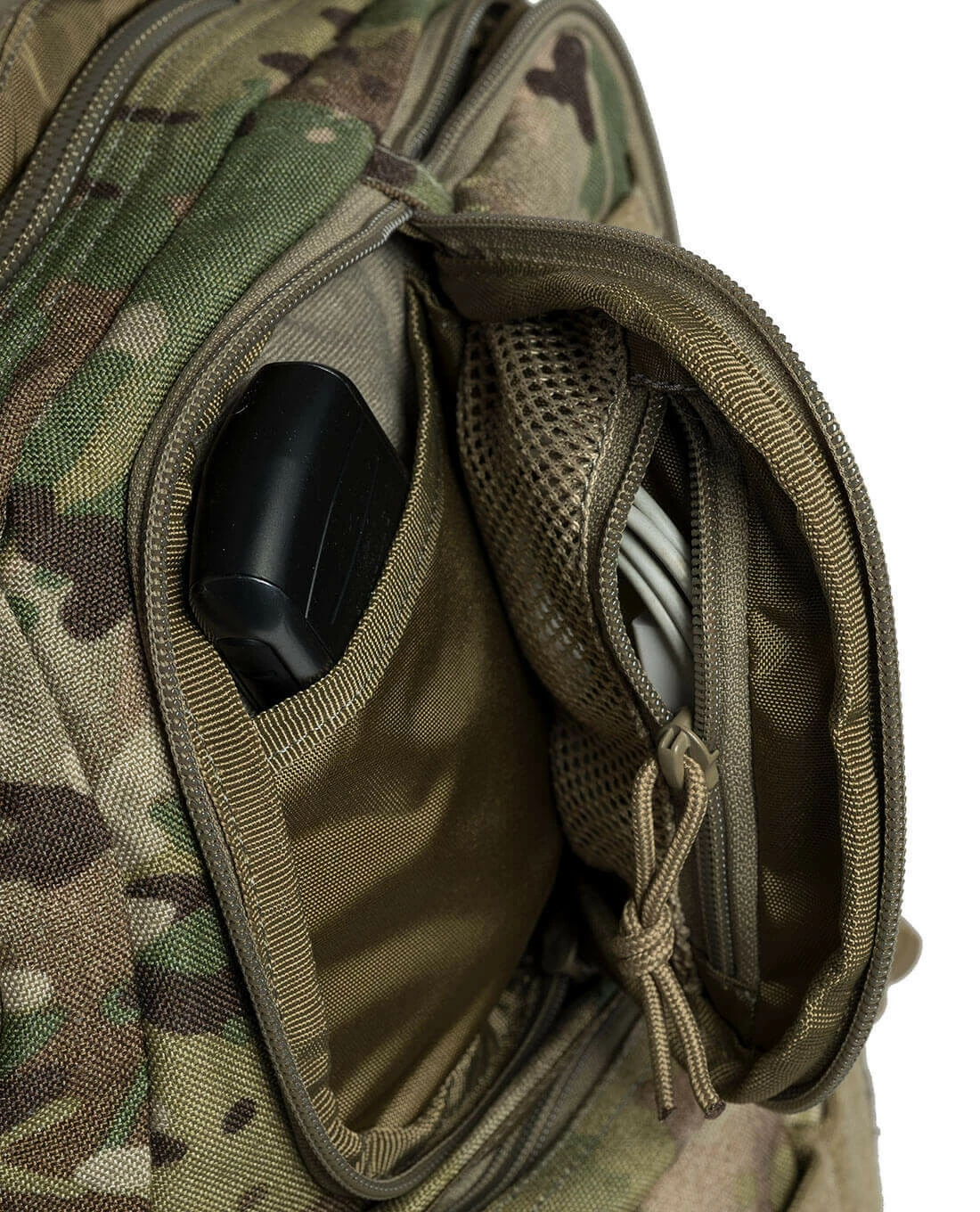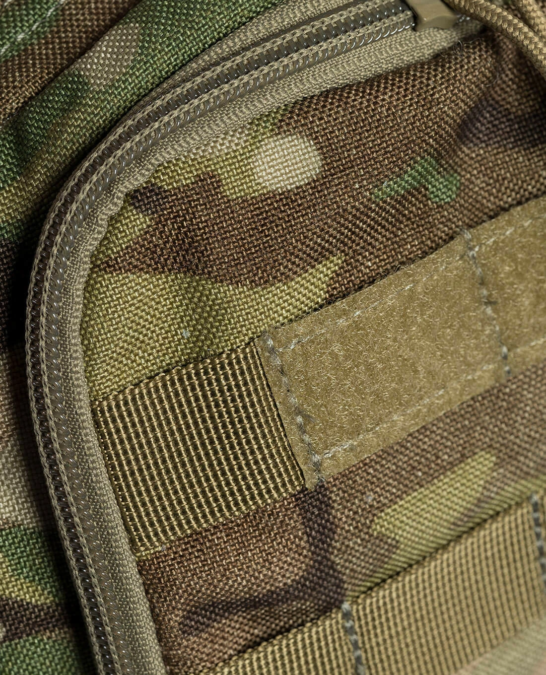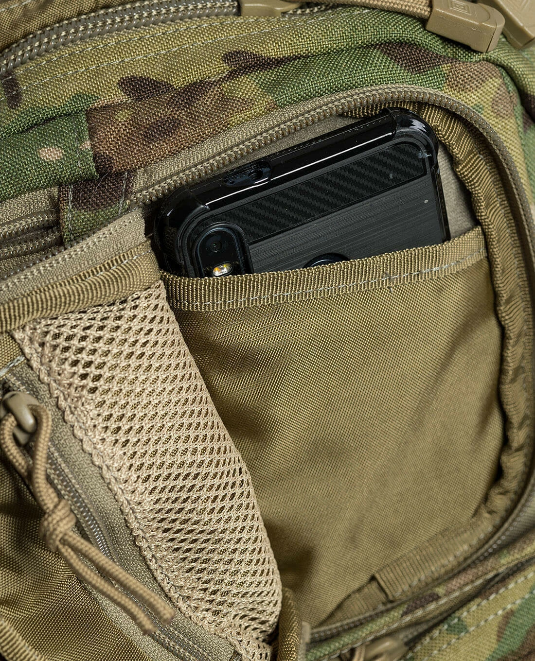 Das CORDURA 1050 den des Einsatzrucksacks ist genau dafür gemacht: den Einsatz. Robust und wasserdicht hält das Material auch ungemütliche Operationen aus und zwar mit einer ausgezeichneten Lebensdauer; das besonders reißfeste Nylon ist für seine Langlebigkeit bekannt. Selbst schwere Lasten können also problemlos gepackt werden. Das etablierte Tragesystem spielt ebenfalls mit, denn die ergonomisch geformte und gepolsterte Rückseite des Rucksacks und die gepolsterten Schultergurte sorgen für einen guten Tragekomfort. Um die beiden Tragegurte zu stabilisieren, kann der Brustgurt geschlossen werden.