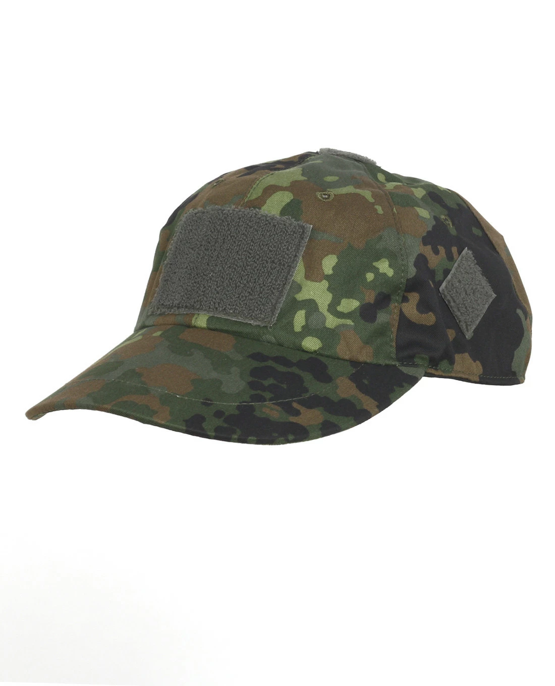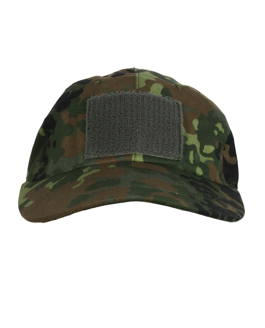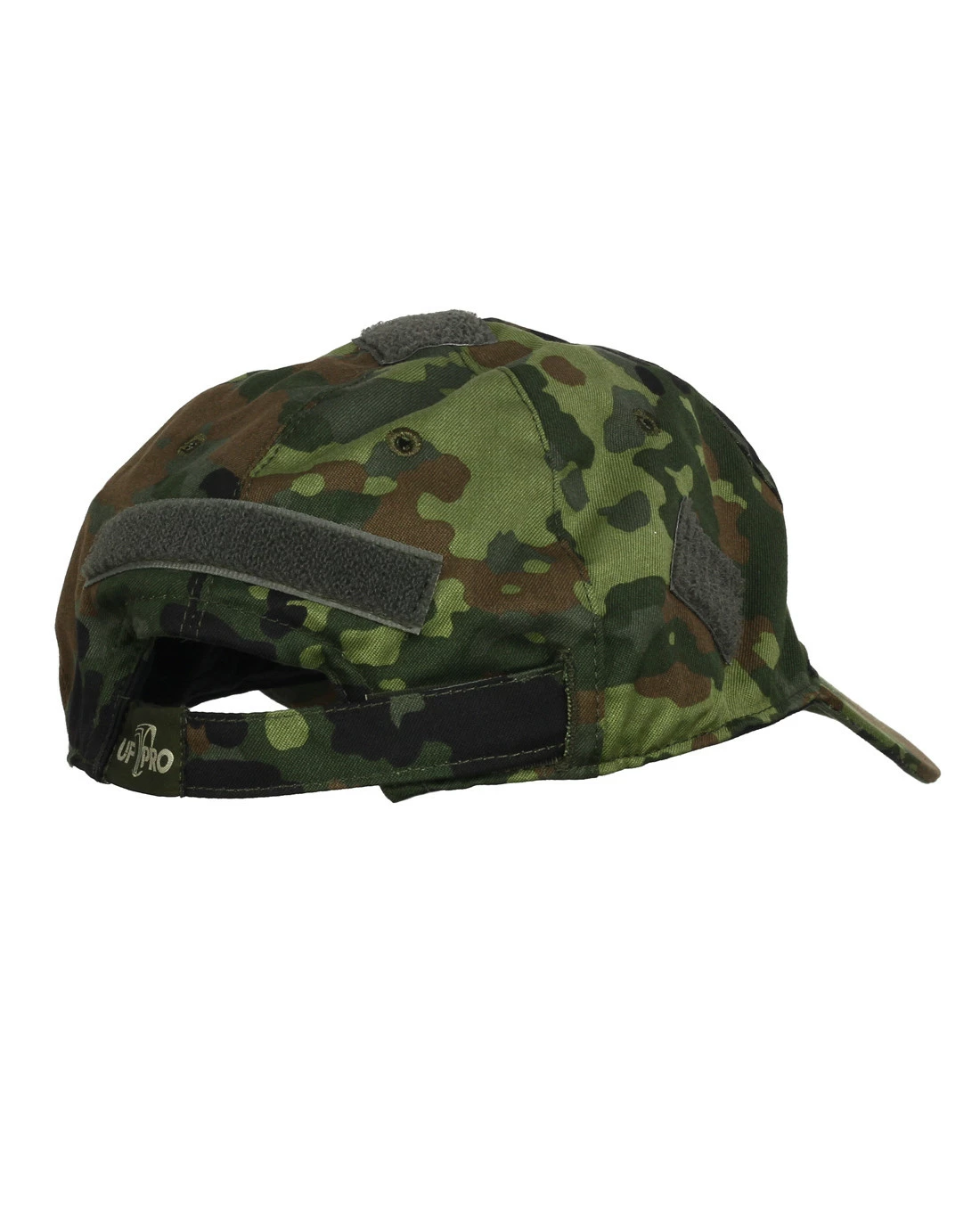 Das UF PRO® Base Cap in Flecktarn besteht aus 100% Baumwolle und verfügt über insgesmt fünf verschiedene Klettflächen. Das Base Cap ist per Klettverschluss größenverstellbar.