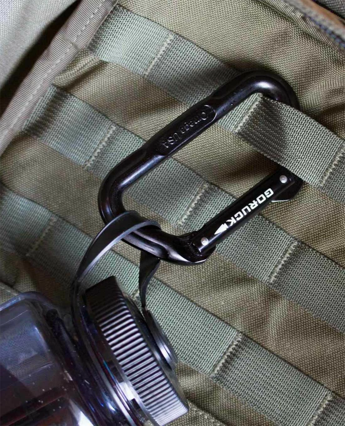 Der klassische Carabiner mit Goruck Logo aus Aluminium wird in einem ISO-Kaltschmiedeverfahren hergestellt und ist dank dieses Herstellungsvorgangs besonders stark. Als praktische Befestigungsmöglichkeit ist der Karabiner super nützlich. Wer beim Rucken zum Beispiel Gewichte aufstocken will, kann sie mit dem Karabiner einfach zusammenschließen. Die klassische D-Form des Hakens trägt die Last dann sicher auf der Längsseite ohne Verschluss.