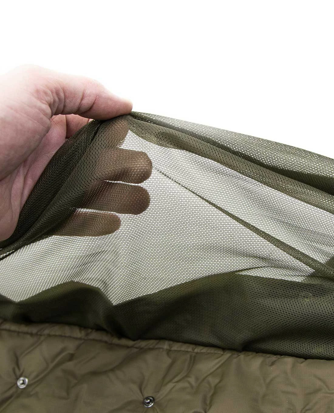 Ein kleines, aber feines Extra vor allem für Eure Wald Missionen ist, dass der Tropen 185 Schlafsack mit einem Moskitonetz im Kopfbereich ausgestattet ist. Es wird ganz einfach mit Schlaufen befestigt und im Gesichtsbereich mit einem Reißverschluss fixiert. Für Einsätze im Temperaturbereich bis +5 Grad ist der leichte Carinthia Schlafsack die perfekte Wahl.