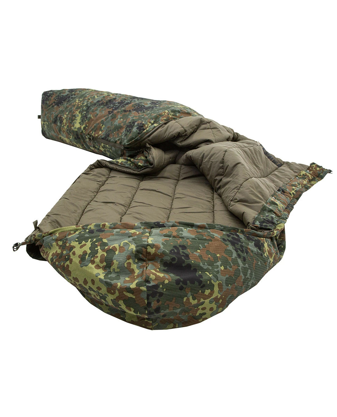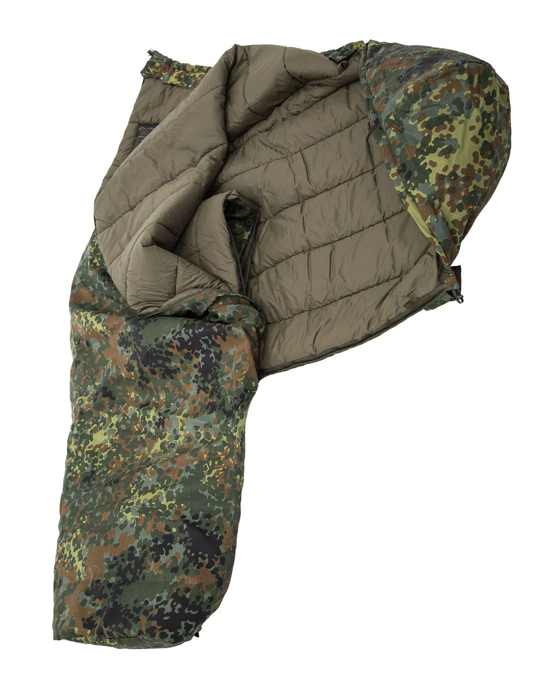 Der Carinthia Tropen 185 in 5Farb Flecktarn ist der Schlafsack für Eure Sommereinsätze im Wald und für den besten, moskitogeschützten Komfort bei Temperaturen bis zu +5 Grad Celsius. Der trapezförmige Schlafsack ist dank G-Loft Isolation so klein zusammenfaltbar, dass er in jeden Rucksack passt – perfekt auch für kurze Trips.