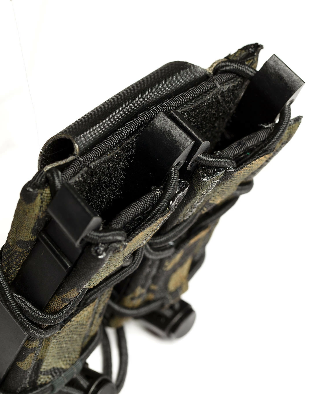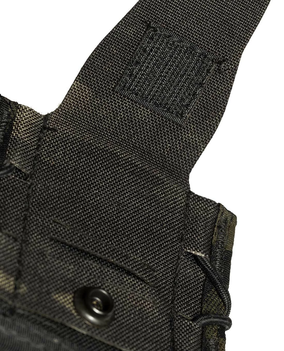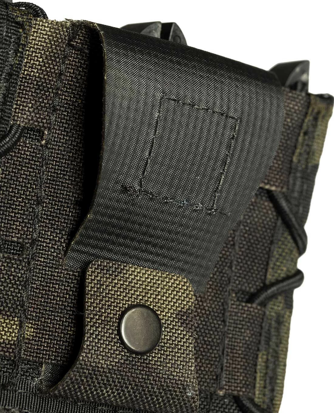 Dank des stabilen 100% Nylon und der Anpassbarkeit durch den Gummizug kann eine große Breite an Pistolen-Magazinen aufgenommen werden: 1911, HK 45, M9/Beretta 92, Glock, XD-Magazine werden alle sicher gehalten und bei Bedarf leicht und geräuschlos herausgezogen.