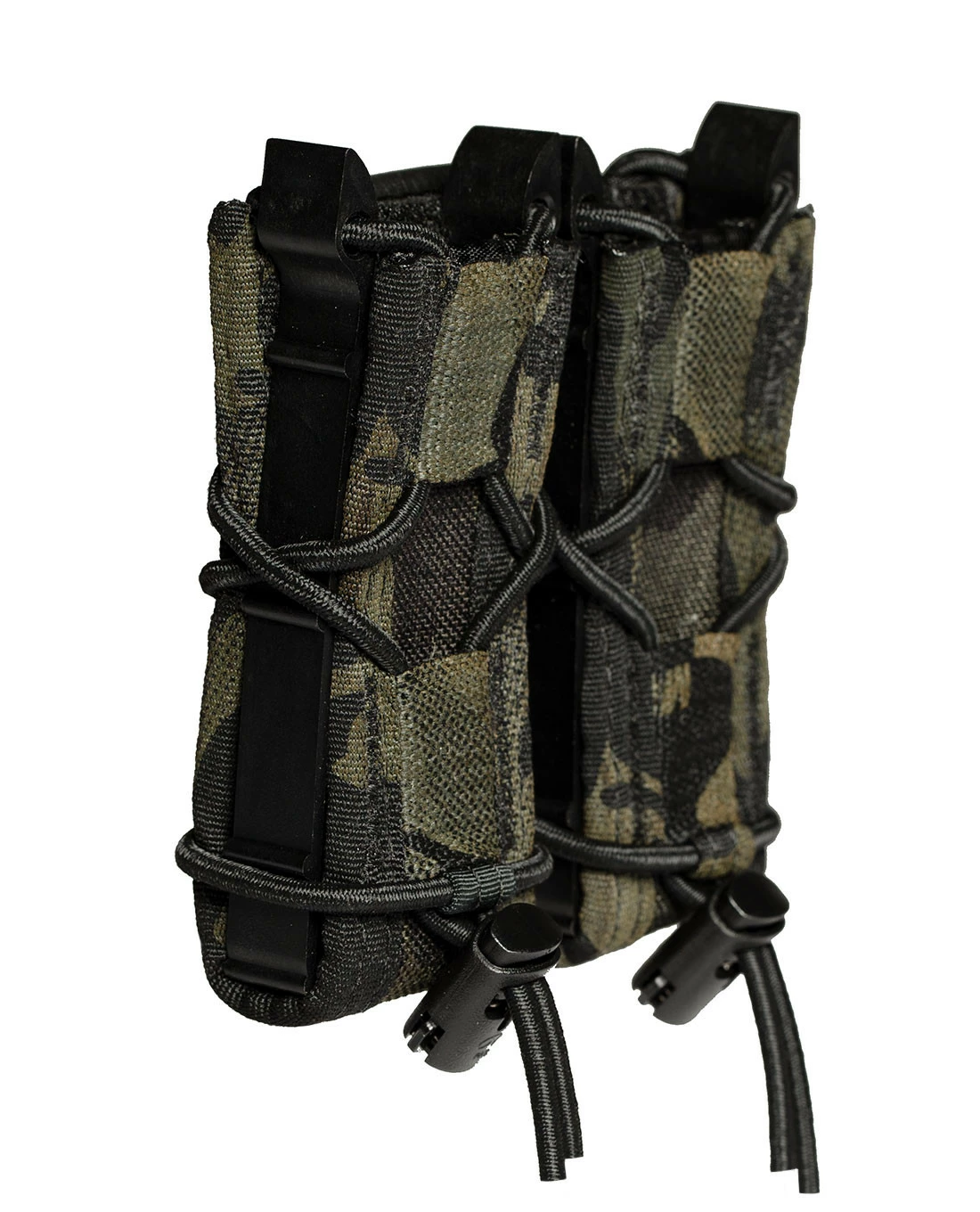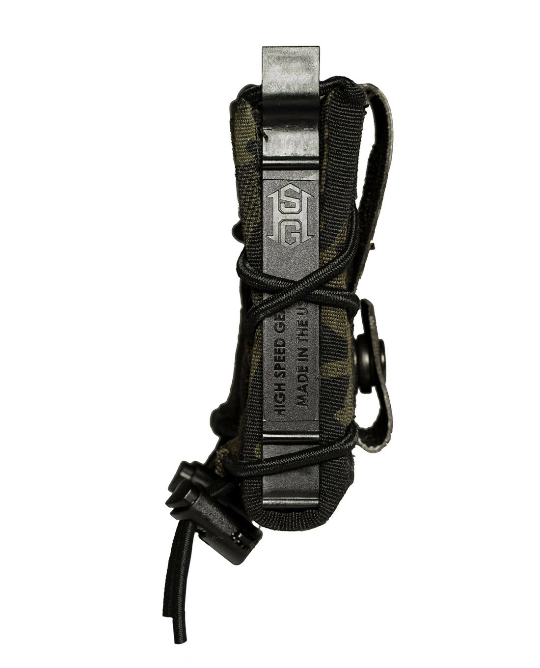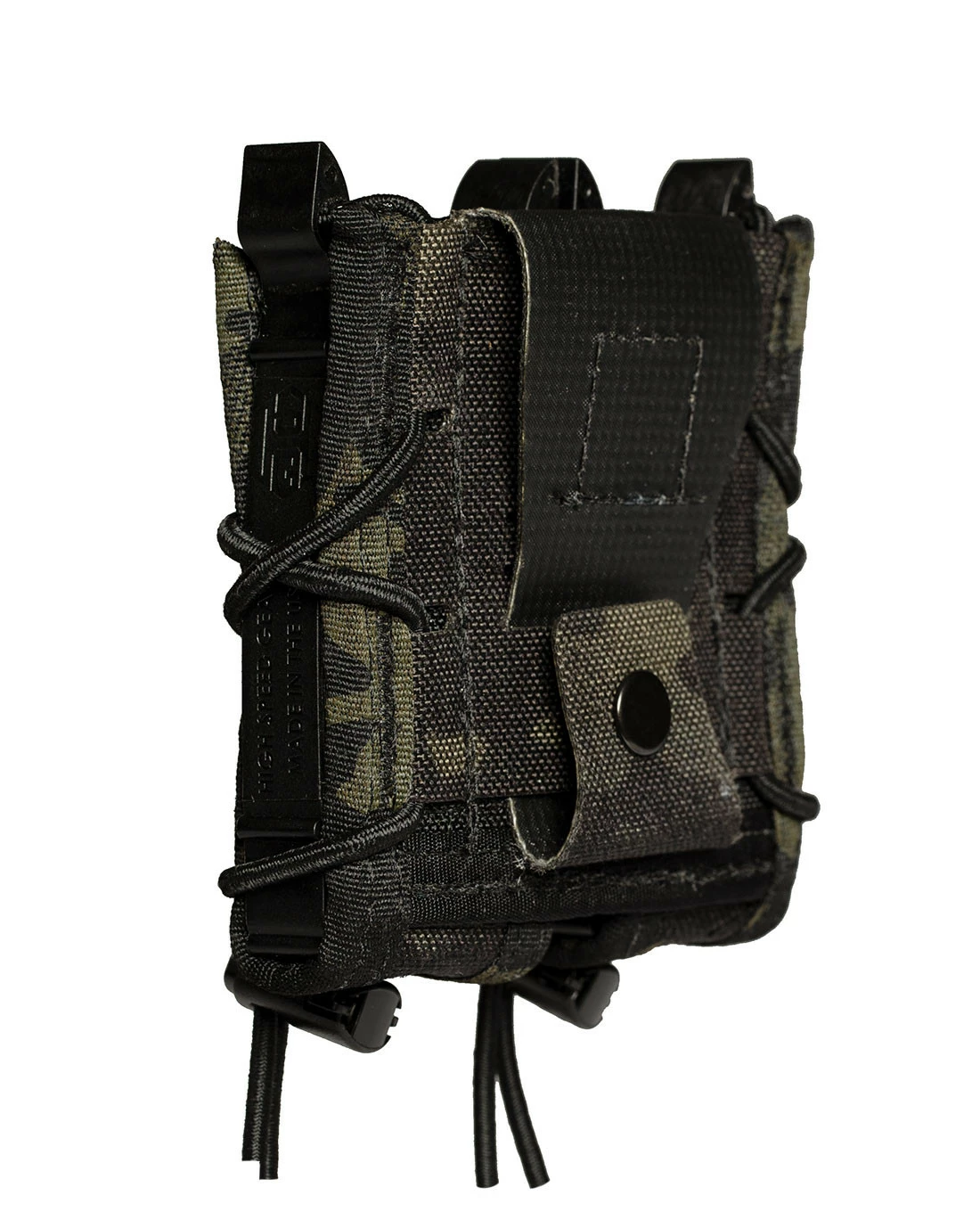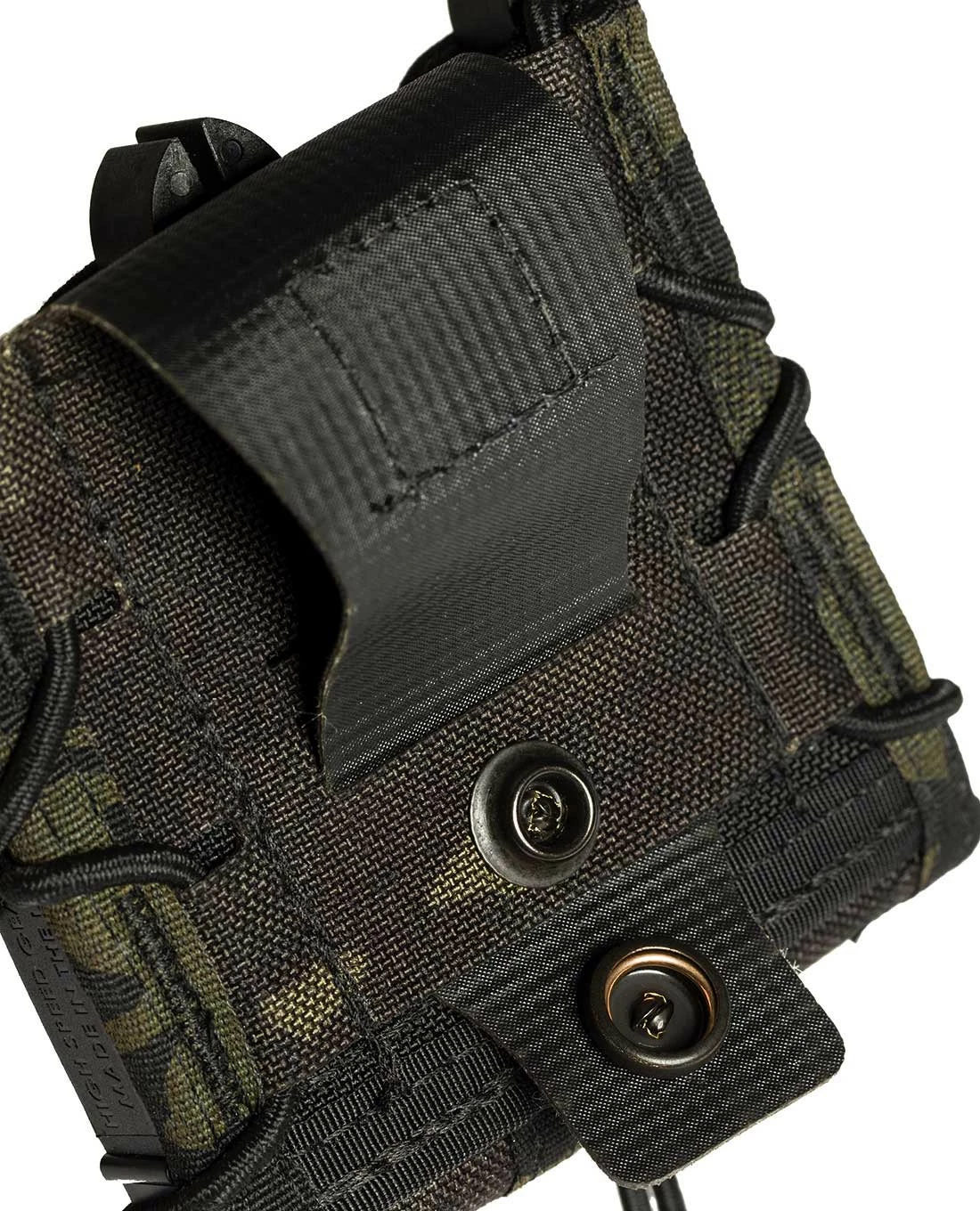 Dank des stabilen 100% Nylon und der Anpassbarkeit durch den Gummizug kann eine große Breite an Pistolen-Magazinen aufgenommen werden: 1911, HK 45, M9/Beretta 92, Glock, XD-Magazine werden alle sicher gehalten und bei Bedarf leicht und geräuschlos herausgezogen.