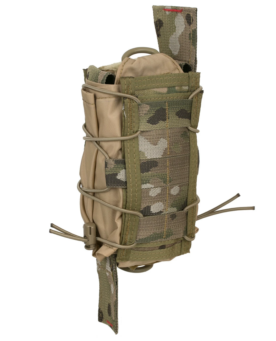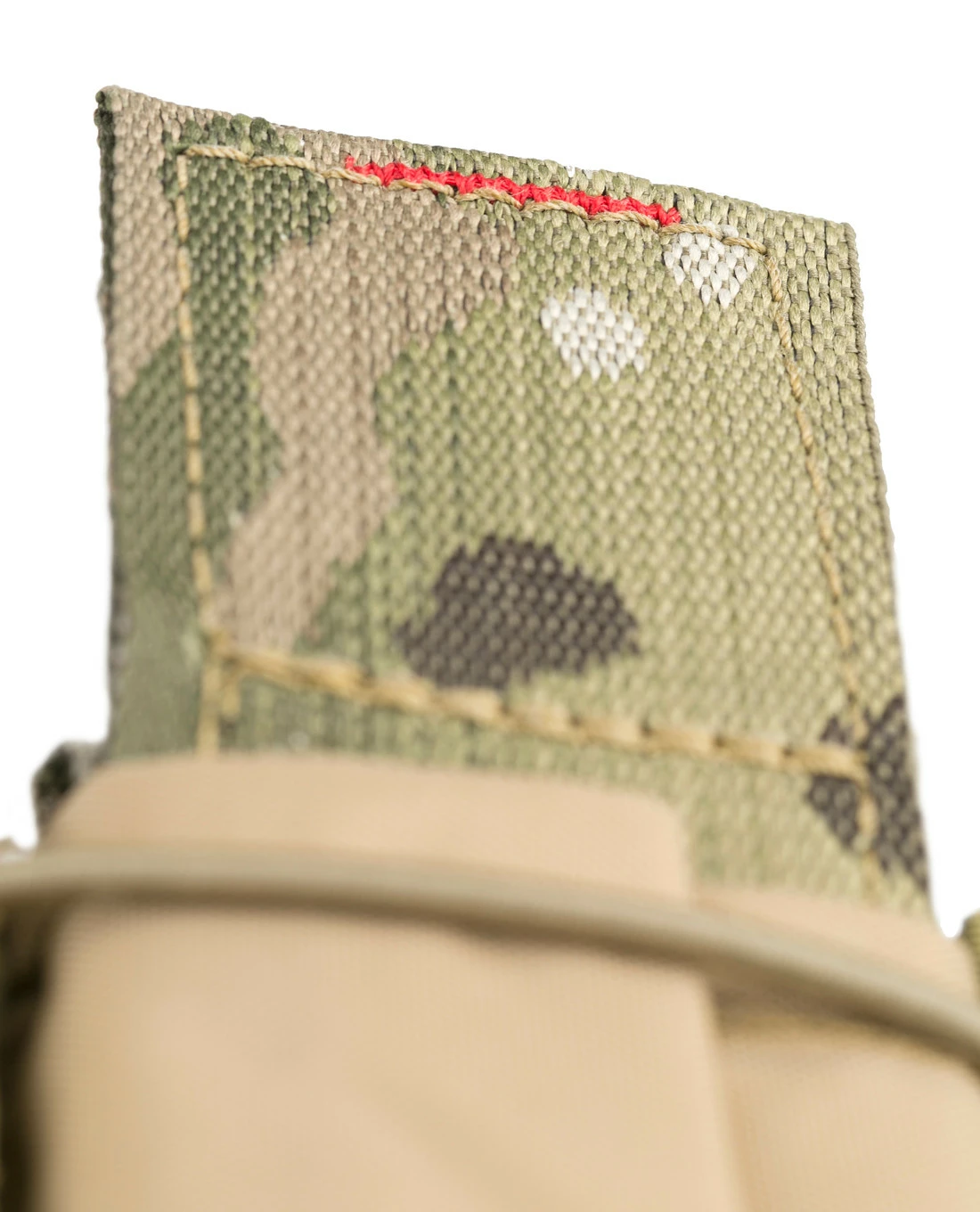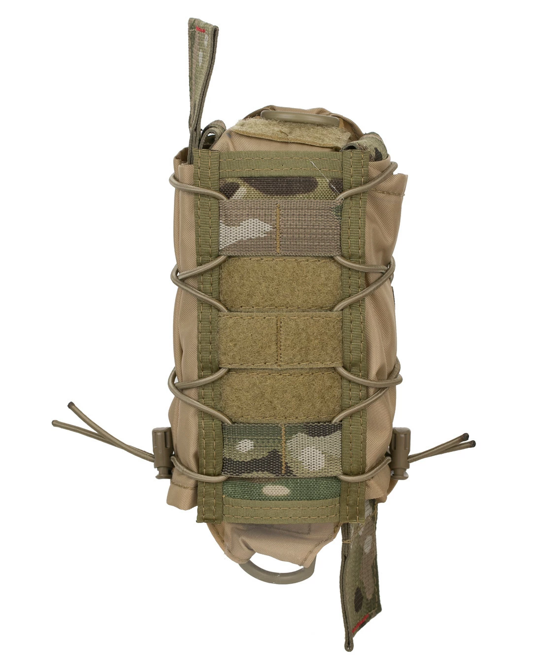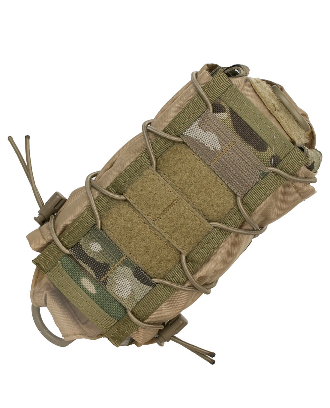 Auch der Zugang zu einem Tourniquet ist mit dieser Tasche immer gewährleistet – und jeder, der sich in einem Einsatz befindet, weiß, wie extrem wichtig dies ist. Genauso wichtig ist auch, dass dieses TQ vor äußeren Bedingungen wie etwa UV-Strahlung geschützt wird. Und so wurden zwei separate, beidhändig nutzbare Taschen geschaffen, die nicht nur das TQ vor Sonne und Witterung schützen, sondern die auch einen schnellen Zugriff von allen Seiten erlauben. Wenn der Nutzer sich afür entscheidet, das TQ woanders zu tragen oder nur ein TQ dabei hat, dann bleibt die unbenutzte TQ Tasche leer oder kann benutzt werden, um andere medizinische Ausrüstung darin zu verstauen. An einem Klettflausch können medizinische Patches zur Kennzeichnung befestigt werden. Kommt mit zwei MALICE Clips für die Montage.