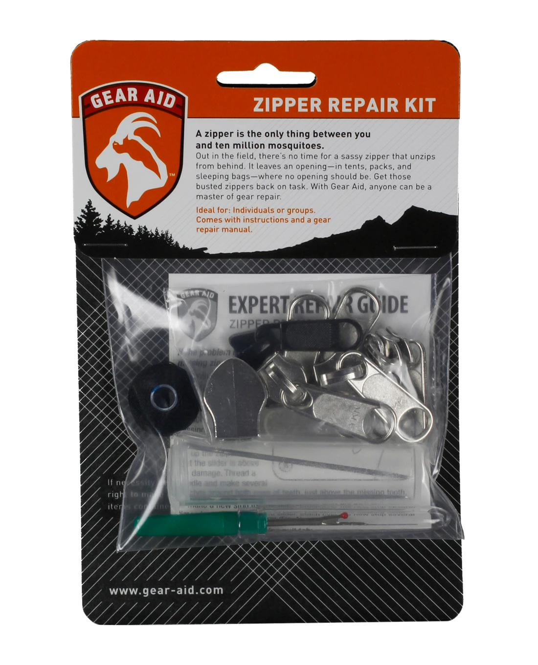 Werfen Sie teure Outdoor-Ausrüstung nicht weg oder lassen Sie ein Abenteuer nicht platzen, nur weil ein Reißverschluss defekt ist. Reparieren Sie ihn lieber schnell und machen Sie Ihre Ausrüstung mit dem Zipper Repair Kit von Gear Aid™ ewig haltbar.