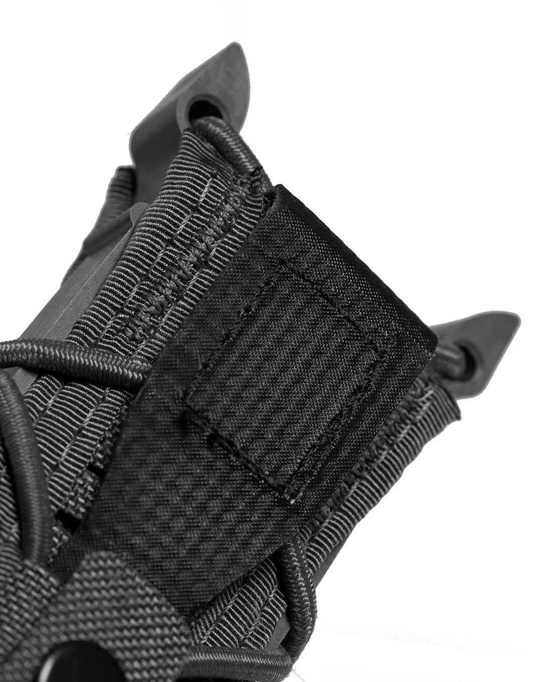 Dank des stabilen 100% Nylon und der flexiblen Einstellbarkeit durch den Gummizug kann eine große Breite an Pistolen-Magazinen aufgenommen werden: 1911, HK 45, M9/Beretta 92, Glock, XD-Magazine werden alle sicher gehalten und bei Bedarf leicht und geräuschlos herausgezogen.