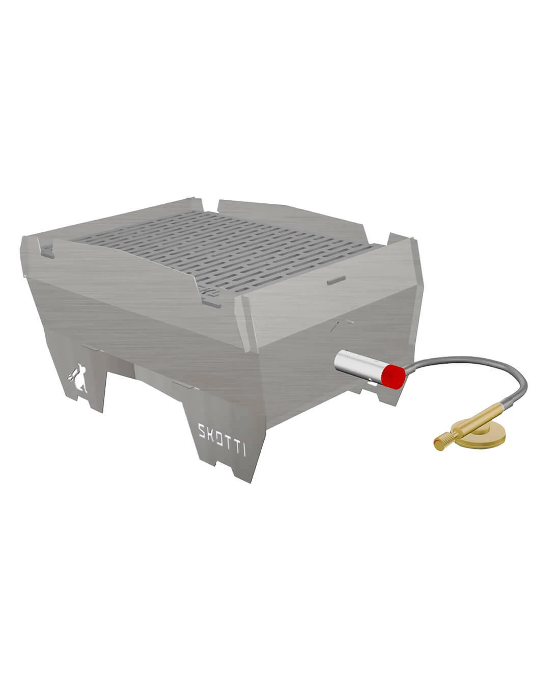 Gas ist und bleibt eindeutig die beste, schnellste und umweltfreundlichste Art zu grillen, aber SKOTTI ist ebenso robust wie flexibel. Ohne Brennerrohr und Abstrahlblech lässt sich SKOTTI problemlos auch als Holzkohlegrill verwenden oder mit einfachem Brennholz betreiben.