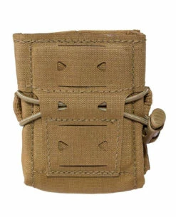 Mit der Speed Reload Pouch, Rifle v2020 hat Tardigrade Tactical auch seine Gewehr-Magazintasche verbessert und vor allem in Sachen Stabilität nachgelegt. Die kleine Mag Pouch, die aus Mil-Spec CORDURA gefertigt wird, vereint einerseits die weichen Eigenschaften des zuverlässigen Nylons, wurde aber an kritischen Stellen versteift: Die Vorderseite und die Ränder sind so verstärkt, dass die Mag Pouch ihre Form nicht verliert. Das macht die Nutzung im Treiben eines Einsatzes deutlich praktikabler, da ein Magazin auch mit einer Hand und ohne Hinsehen sicher eingeschoben werden kann. Befestigt und gehalten wird das Magazin zusätzlich mit einem umlaufenden Bungee-Cord, das mit einem Kordelstopper zusammengezogen wird.