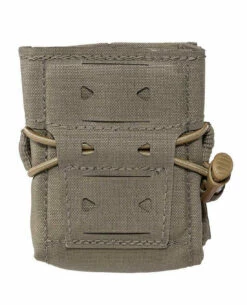 Die taktischen Kollegen aus dem hohen Norden haben auch ihre Rifle Mag Pouch in einer 2020er Version überarbeitet und legen mit der Speed Reload Pouch – Rifle v2020 eine mag pouch vor, die mit wenig Material und viel Sicherheit aufwartet. Die kleine Zubehörtasche wird aus Mil-Spec CORDURA gefertigt und vereint die weiche Struktur des Nylon mit verstärkten Teilen auf der Frontseite und an Rändern. Durch diese Versteifung bleibt die Form der Magazintasche erhalten und ein Magazin kann blind und und mit einer Hand eingeschoben werden. Die versteifte Form trägt auch der Sicherung des Magazins bei, das allerdings in der Hauptsache von einem umlaufenden Bungee-Cord mit Kordelstopper gehalten wird. Auf der Vorderseite sind außerdem M.O.L.L.E.-Schlitze in Lasercut-Ausführung angebracht, mit der eine weitere Pistolenmagazintasche befestigt werden kann. Obwohl auch Magazine ähnlicher Größe passen, ist die Speed Reload Pouch Rifle für Magazine der Machart M4, AR15, Sig MCX, HK416, und ähnlicher 556 Nato Kaliber Gewehr-Magazine gemacht. Befestigt wird die Magazintasche mit dem M.O.L.L.E.-System.