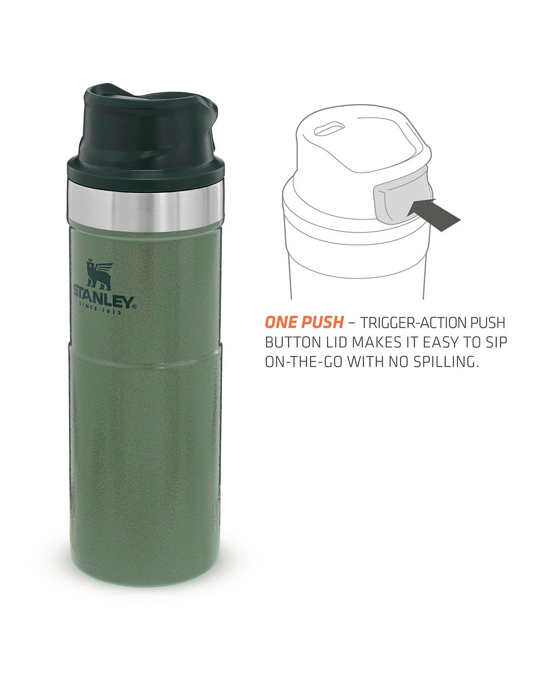 Keine Dawn Patrol ohne heißen Tee in der Hand, kein Gelände Recce ohne Kaffee? Da haben wir was für Euch! Der Klassiker unter den Travel Mugs, der Versorger für Unterwegs, der Allrounder für Kaltes oder Heißes! Die Classic Classic Trigger-Action Travel Mug von Stanley kann beides: Sie kann Euer Iso-Getränk bis zu 10 Stunden lang kühlen und Euren Kaffee oder Tee bis zu 7 Stunden lang heiß halten.