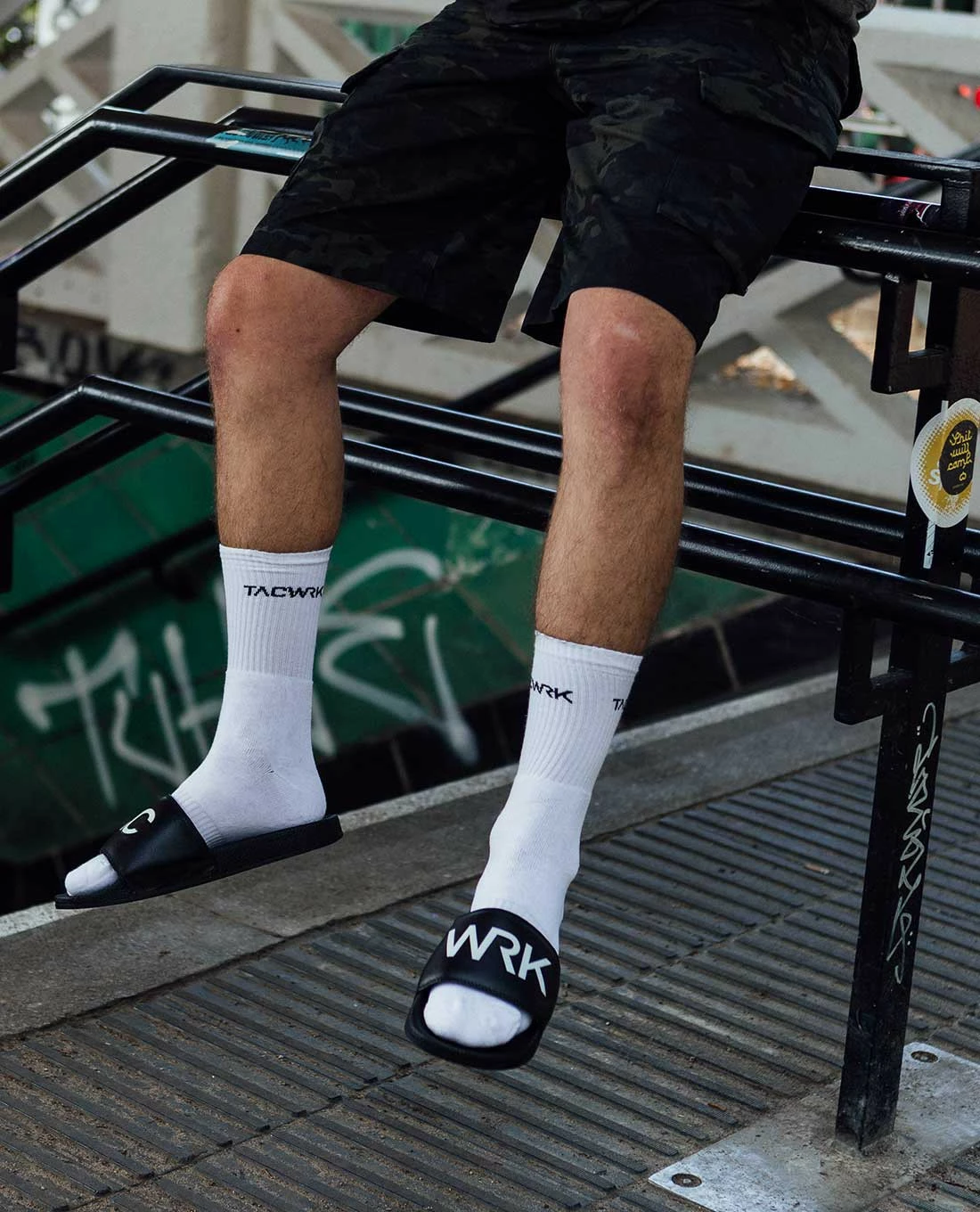 Endlich ist es soweit: Die weltmännische Tennissocke im TACWRK Design hält Einzug in den auserwählten Kreis unserer taktischen Swag Essentials! Von Marzahn bis Malibu Beach verleihen diese Socken der kompromisslosen Taclette den allerletzten Schliff und machen den gestrige No-Go Style zum Full Throttle Movement von morgen.