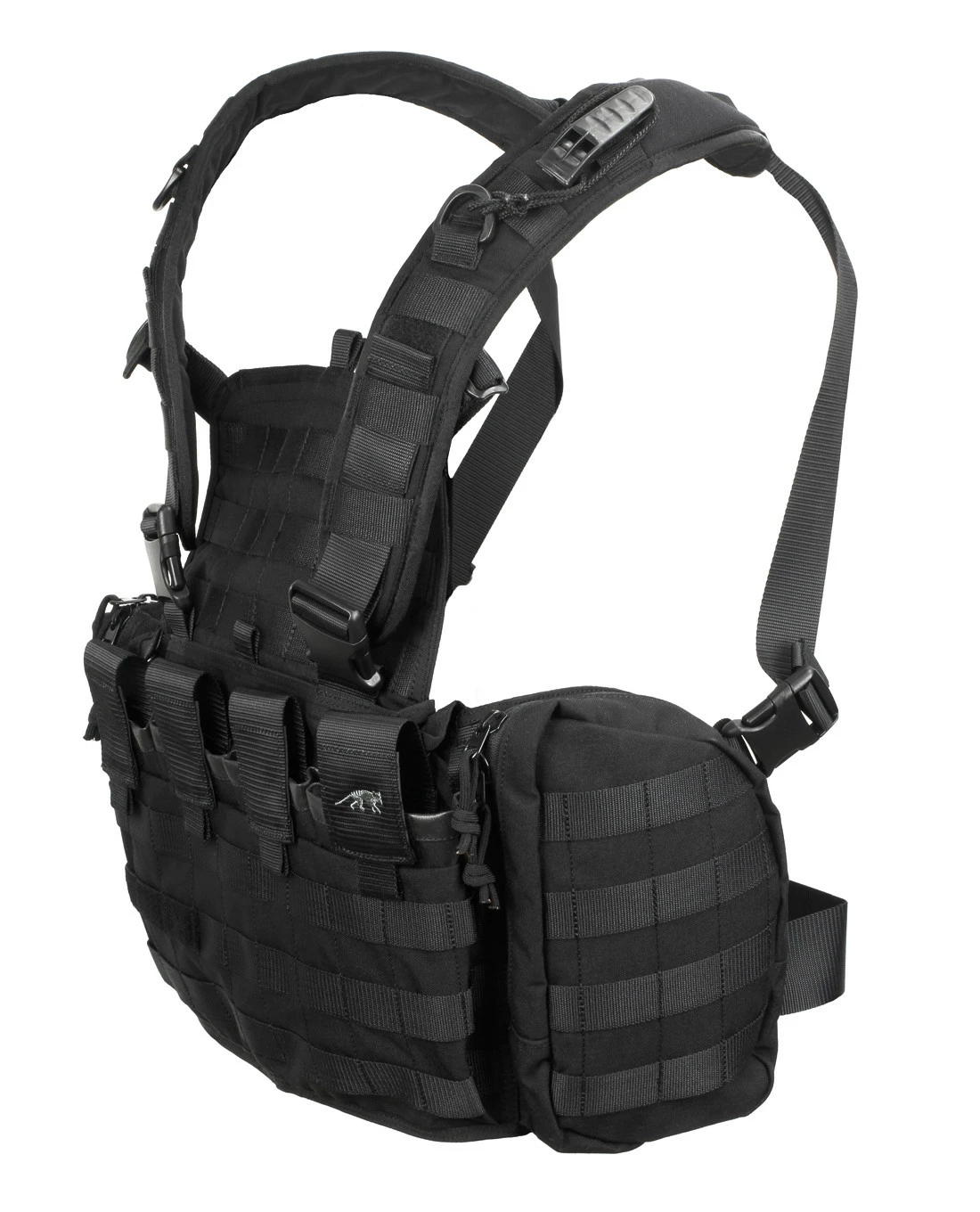 Die universell einsetzbare Kampfmittelweste von Tasmanian Tiger ist besonders leicht und wird über verstellbare, gut gepolsterte Träger angelegt. In einer ausklappbaren Einschubtasche kann eine Schutzplatte integriert werden (nicht im Lieferumfang enthalten). In vier einzelnen Magazintaschen können G36/SIG/AUG oder Mf-M16 Magazine untergebracht werden. Zwei Mehrzwecktaschen an den Seiten haben Platz für je eine 1l-Wasserflasche und können mit Reißverschlüssen geschlossen werden. Über das Molle-System ist die Weste problemlos mit weiterer Ausrüstung kombinierbar.