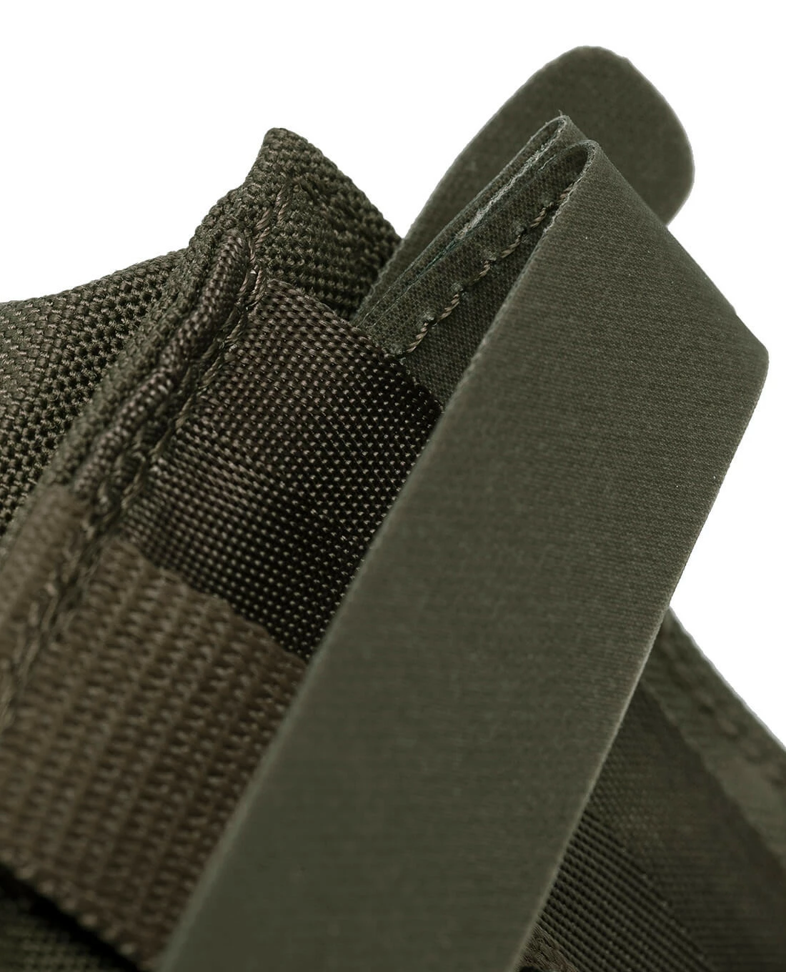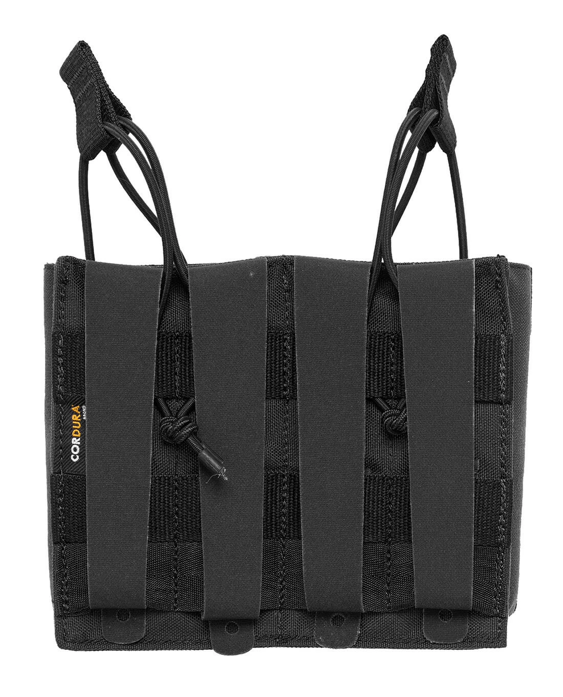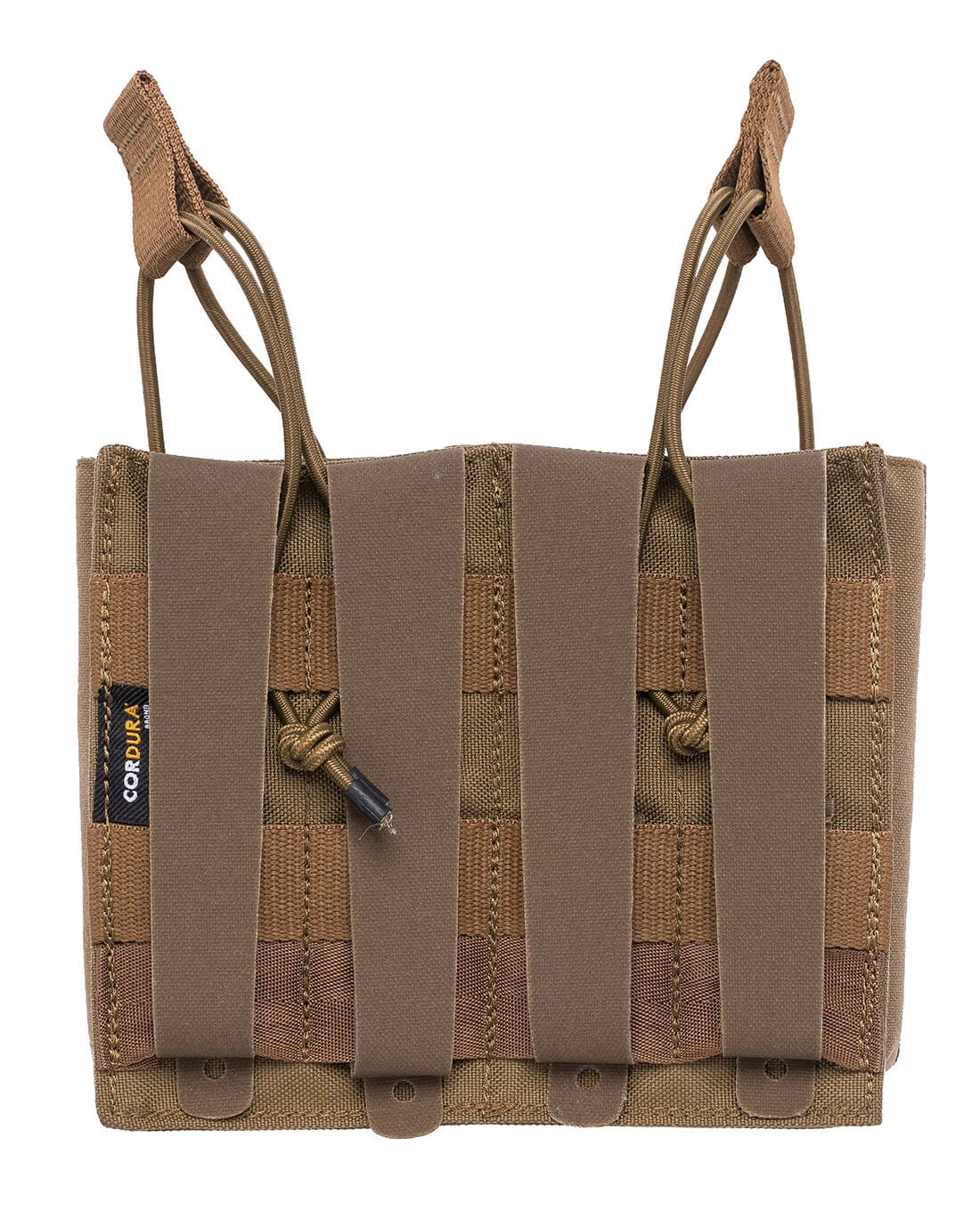 Die kurze Magazintasche TT 2 SGL Mag Pouch BEL MKII wurde von Tasmanian Tiger für die Aufnahme von 2 Einzelmagazinen der Größe G35, AR15 erdacht. Die Magazine werden nebeneinander in der Mag Pouch eingesteckt und mit jeweils einem Bungee-Cord gesichert. Die BEL Variante bei Mag Pouches hat sich inzwischen bewährt, da sie die Benutzung vereinfacht. Das Cordura 700 den ist langlebig und robust. Mit einer Abmessung von 17 x 13,5 x 5 cm benötigt die Magazintasche für zwei Einzelmagazine nur vier M.O.L.L.E.-Schlaufen zur sicheren Aufnahme an Gürtel oder Weste.
