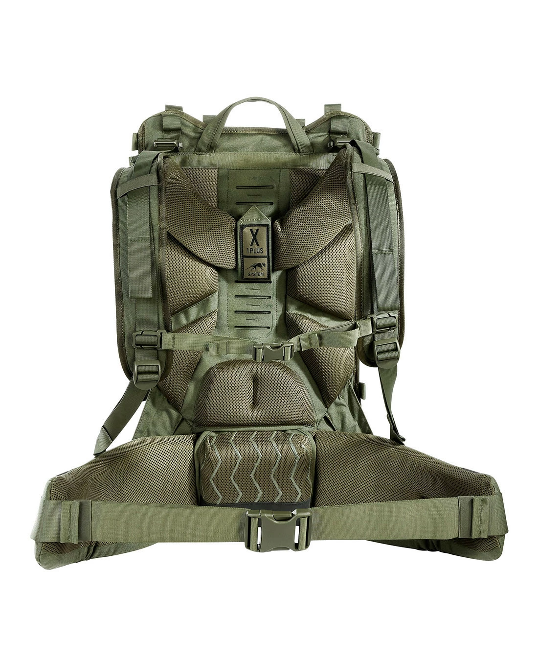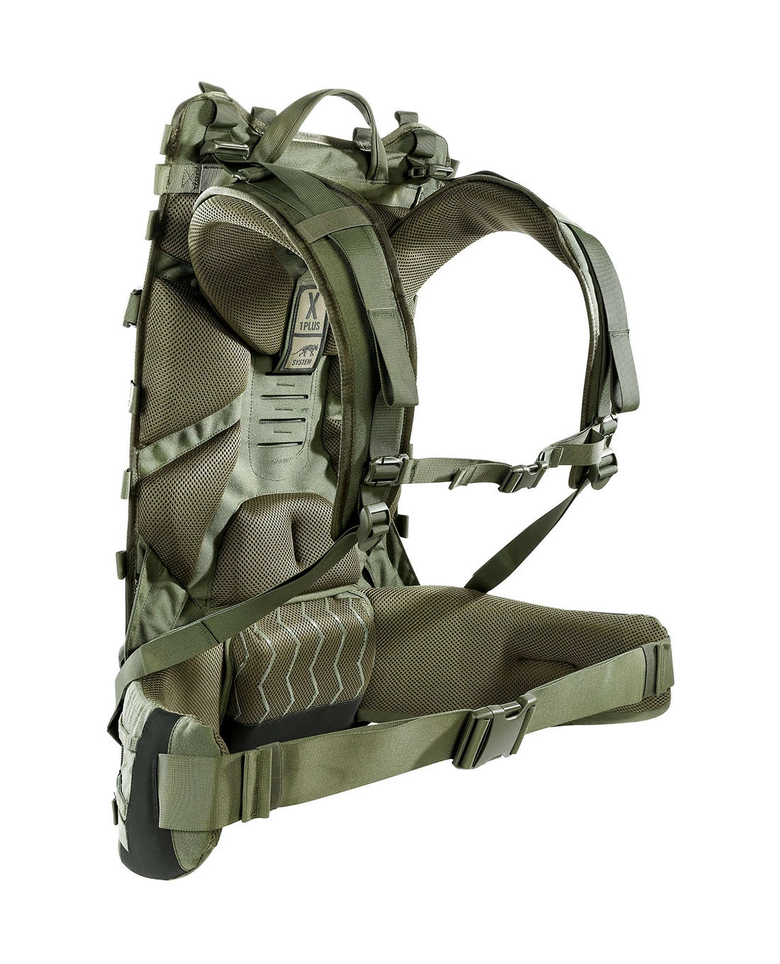 Tasmanian Tiger hat hier das extrem leistungsstarke X1 Plus-Tragesystems eingesetzt, das selbst schwerste Lasten sicher verteilt: Ergonomisch geformte Aluminiumstäbe übertragen einen Teil des Gewichts auf den gepolsterten Hüftgurt, der aus zwei gepolsterten Flossen besteht und sich in der Weite einstellen lässt. Die Rückenpolsterung ist konkav ausgeformt und für bessere Belüftung kammerförmig angeordnet, so dass sie sich dem Rücken perfekt anpasst. Ebenfalls ergonomisch gepolsterte Schultergurte runden den Tragekomfort ab.
