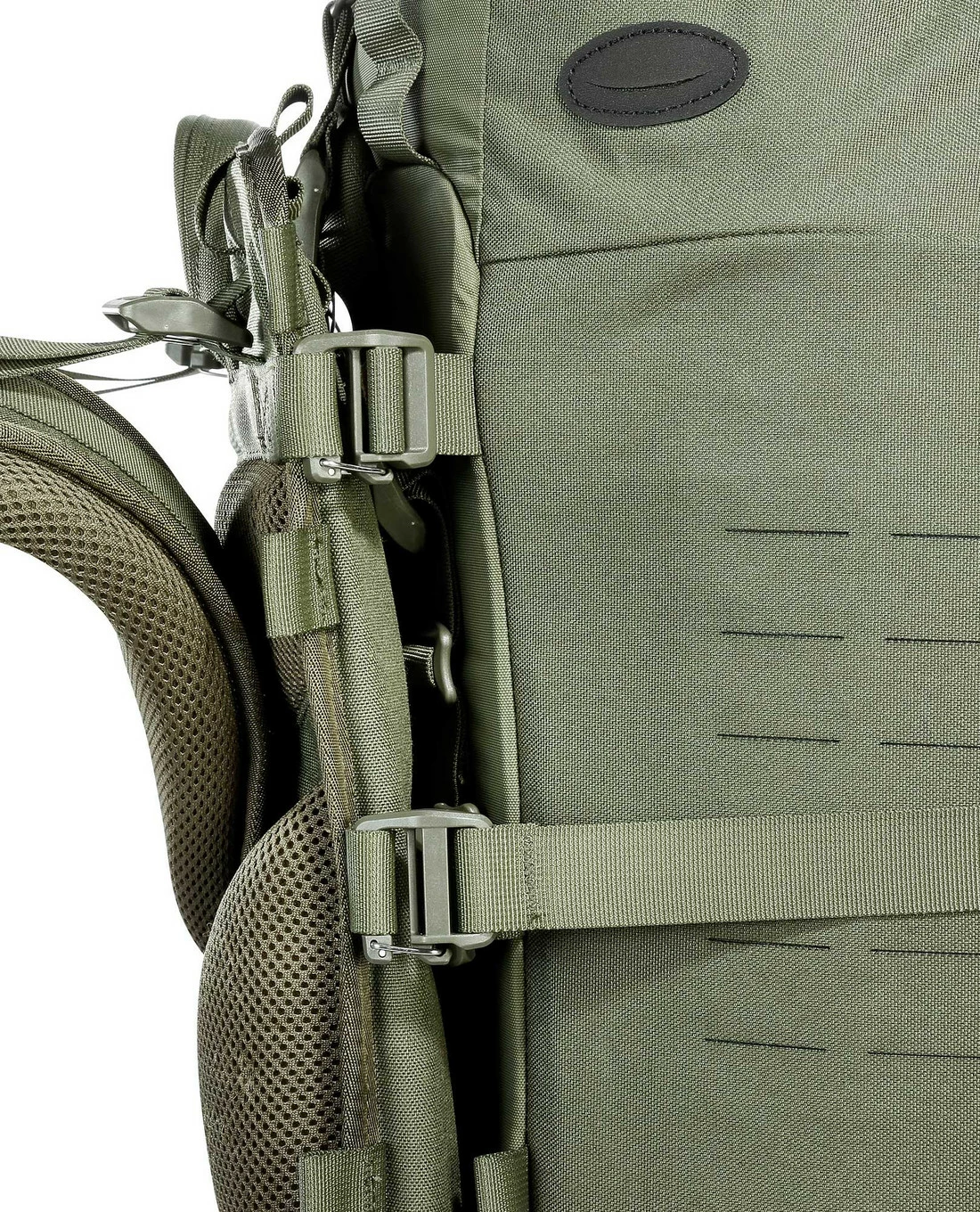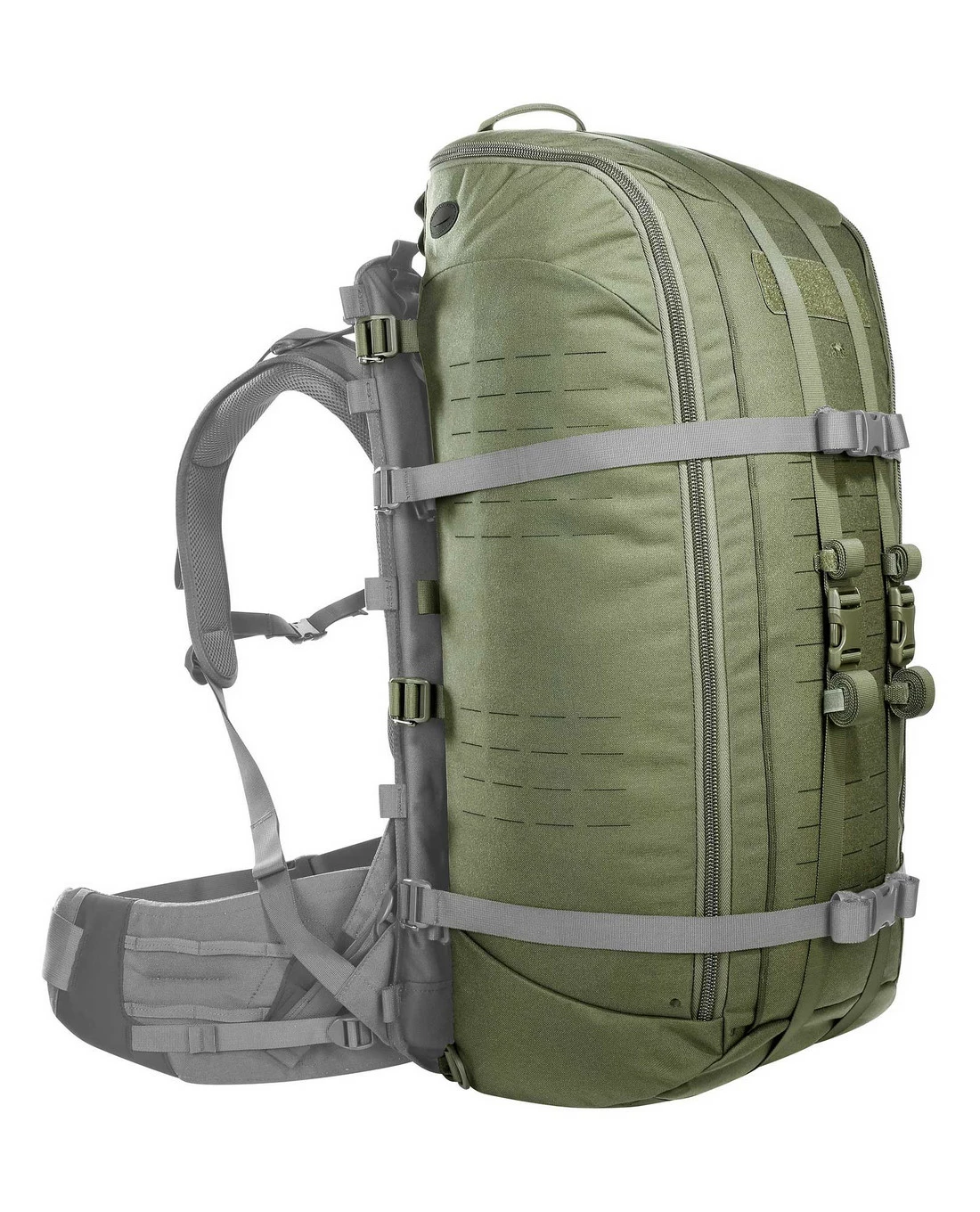 Für die maximale Modularität ist der Rucksack im Inneren mit M.O.L.L.E Fleece ausgelegt und auch die Front und Seiten des Packsacks sind mit M.O.L.L.E in Lasercut-Ausführung versehen. Dank der reduzierten Materialfülle und zwecks des Anspruchs an die Flexibilität wiegt der TT Base Carrier Pack selbst nur etwas mehr als 1 Kilo und ist damit die ideale Option für eine spontane Umfunktionierung des TT Base Carriers.