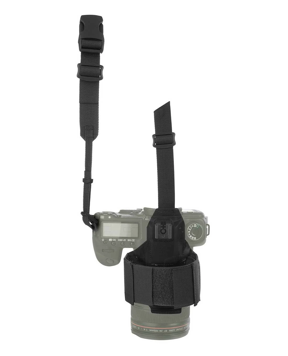 Die einstellbare Halterung kann mit Objektivlängen von bis zu 9,5 cm verwendet werden und fixiert die einsatzbereite Kamera für schnellen Zugriff zuverlässig. So kann die Nackenmuskulatur auch in unwegsamen Gelände optimal entlastet werden. Als ergänzende Sicherung empfiehlt sich, den Nackengurt der Kamera auch weiterhin zu nutzen. Um die perfekte Balance zu halten, werden von Tasmanian Tiger Objektivlängen von mindestens 8 cm empfohlen, was jedoch auch abhängig vom Gewicht der jeweiligen Kamera ist.