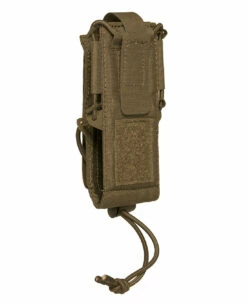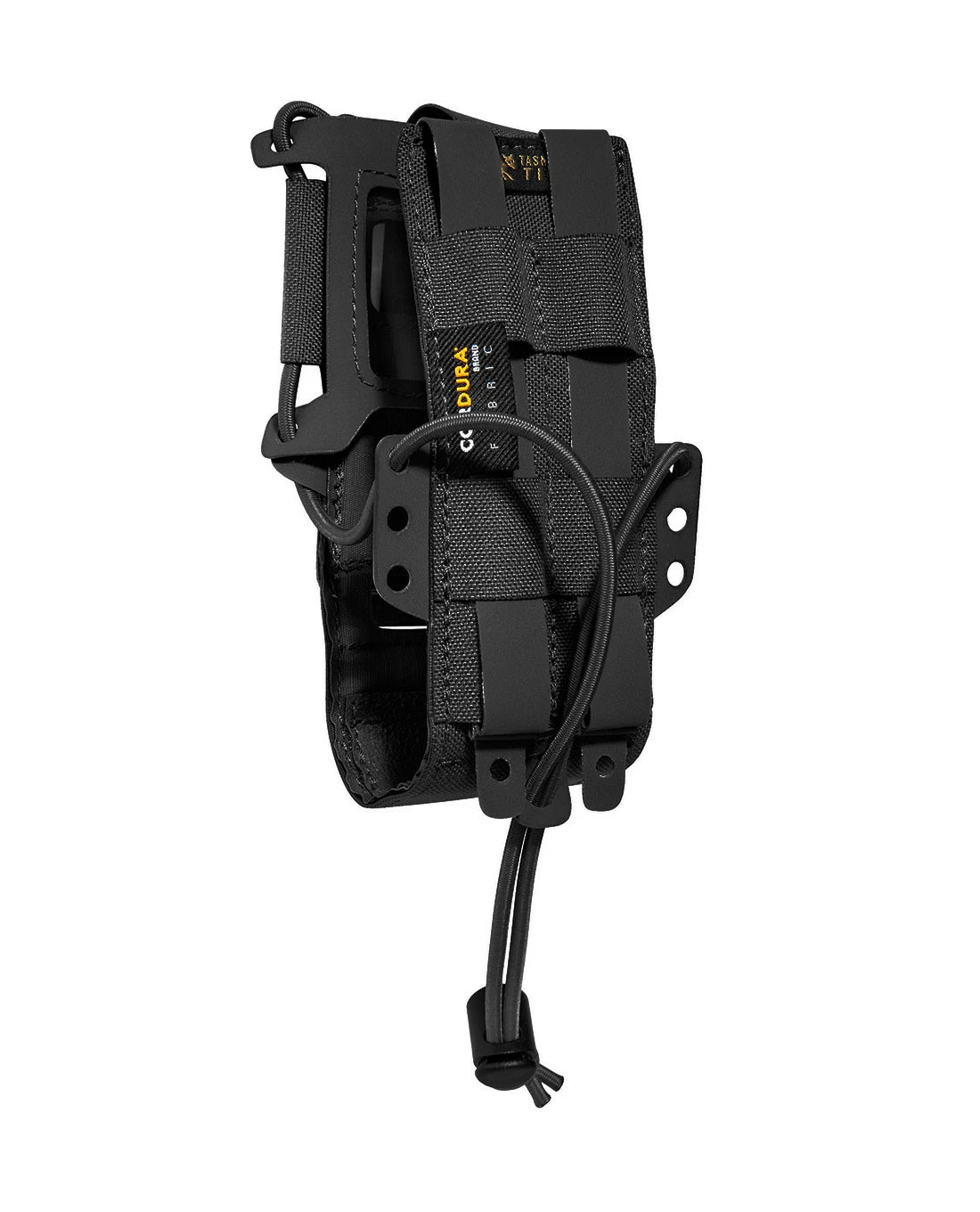 Die Benutzung des Funkgeräts funktioniert auch mit Handschuhen, weil die Sprechtaste und das Bedienfeld frei nutzbar sind. Die kleine comm pouch ist mit dem M.O.L.L.E-Reverse-System ausgestattet und benötigt nur zwei Schlaufen zur Befestigung. Sie kann auch direkt an einem Gürtel mit bis zu 50mm Breite festgemacht werden. Der Aufklappwinkel ist verstellbar. Gefertigt aus TPU Cordura 700 den / T-Square Rip FD.