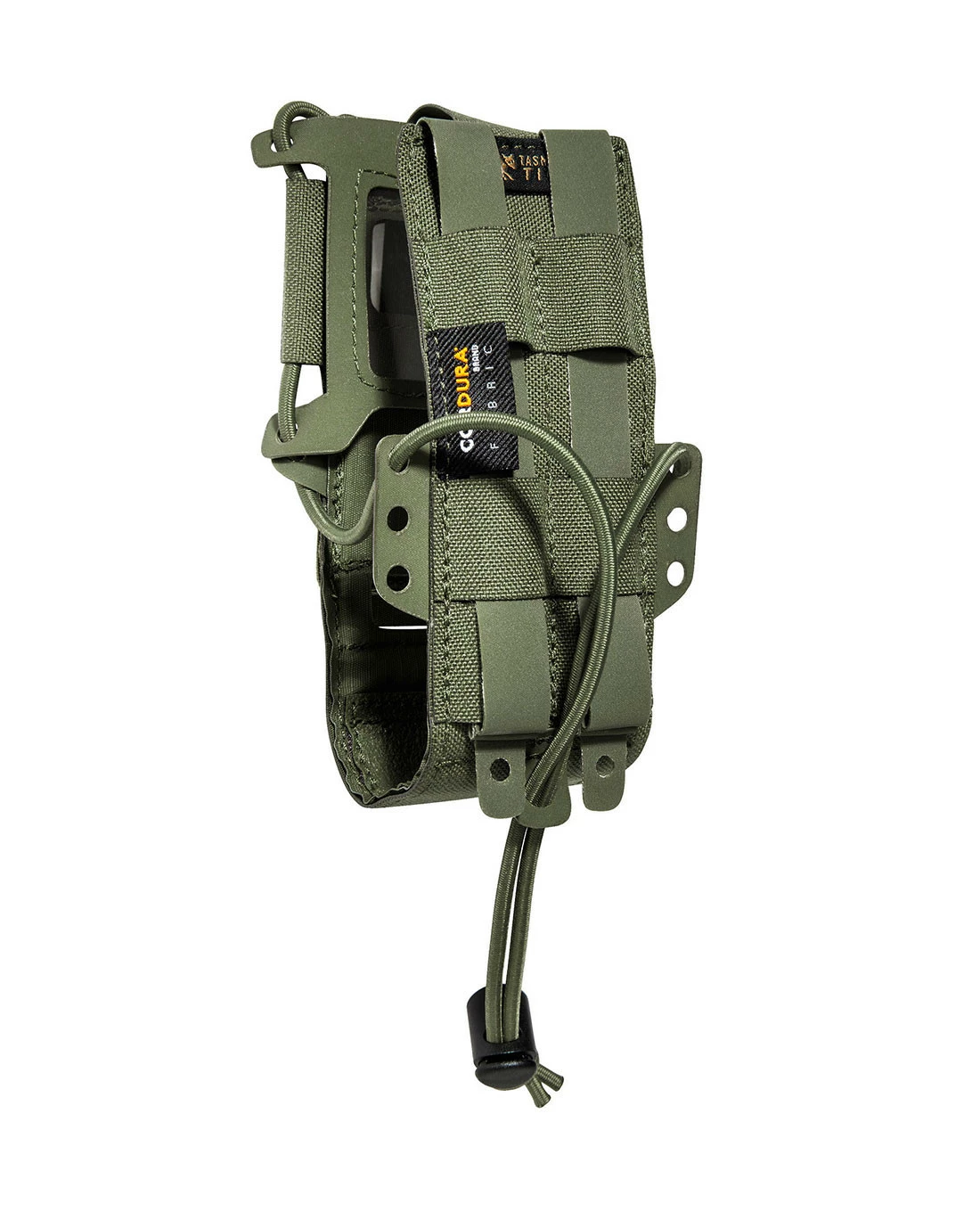 Die Benutzung des Funkgeräts funktioniert auch mit Handschuhen, weil die Sprechtaste und das Bedienfeld frei nutzbar sind. Die kleine comm pouch ist mit dem M.O.L.L.E-Reverse-System ausgestattet und benötigt nur zwei Schlaufen zur Befestigung. Sie kann auch direkt an einem Gürtel mit bis zu 50mm Breite festgemacht werden. Der Aufklappwinkel ist verstellbar. Gefertigt aus TPU Cordura 700 den / T-Square Rip FD.