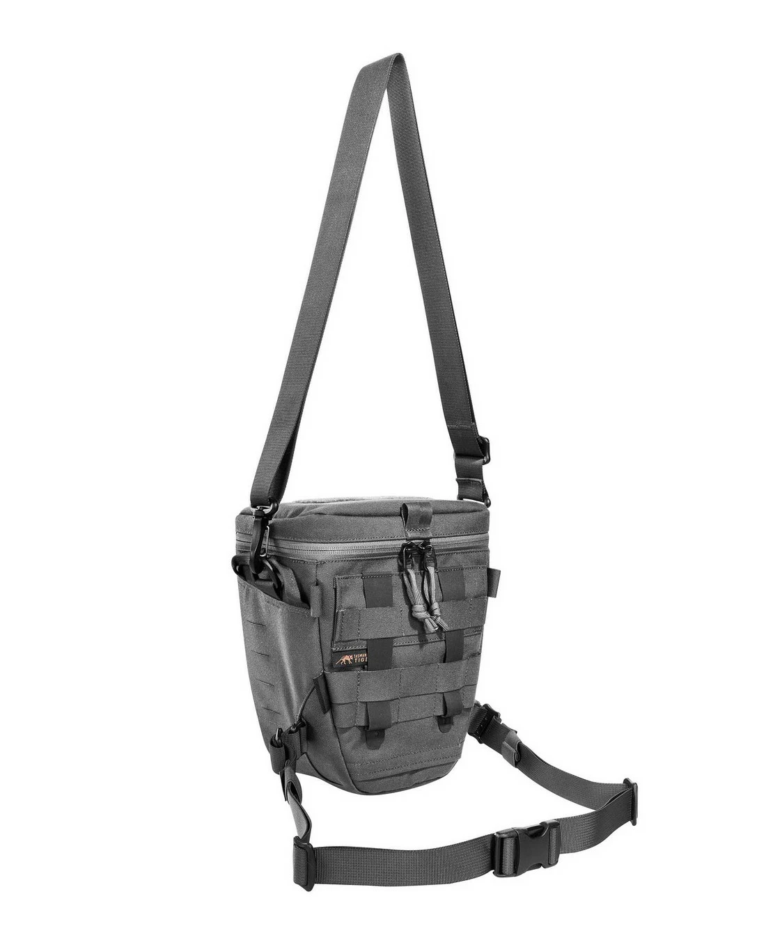 Die Tasche kann mit dem abnehmbaren, in der Länge verstellbaren Tragegurt über der Schulter getragen werden. Sie kann aber auch mit dem abnehmbaren Hüftgurt oder direkt am Gürtel getragen werden. Das M.O.L.L.E System auf der Rückseite bringt zusätzliche Befestigungsmöglichkeiten mit. Für den Schutz einer Kamera und die gleichzeitige Integration in Eure Gear ist die TT Focus ML Camera Bag jetzt auch in Titan Gray erhältlich.