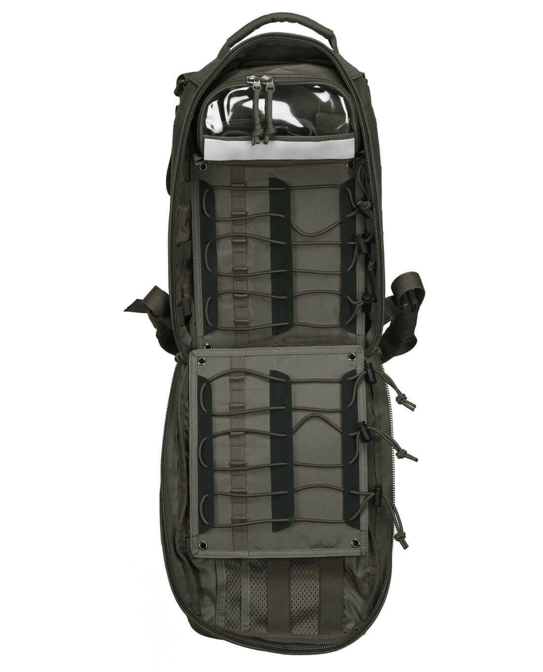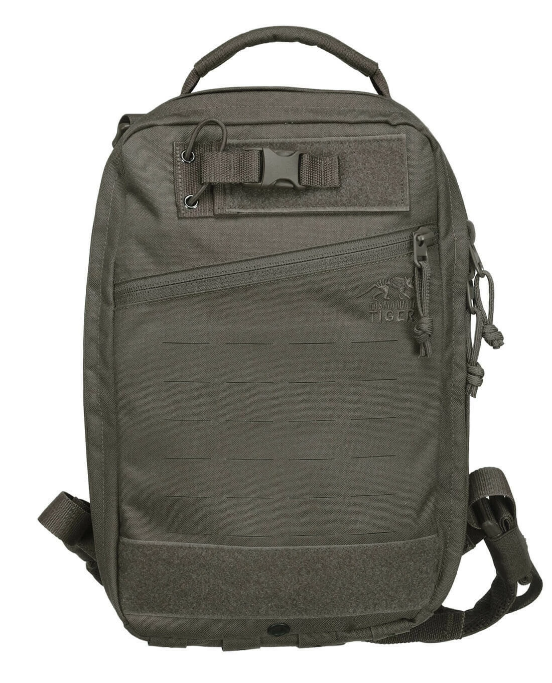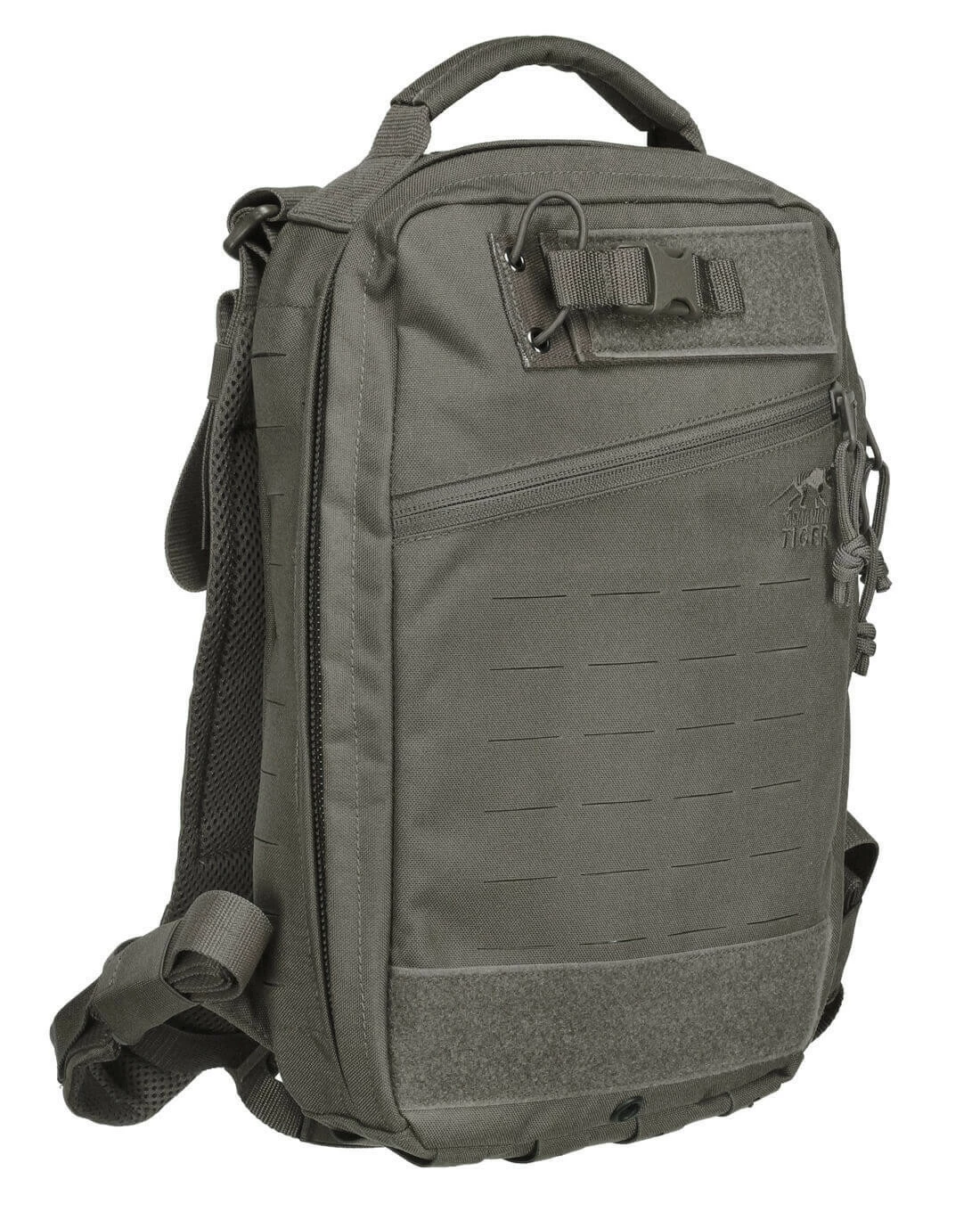 Im Inneren verfügt der kompakte Medic Assault über diverse elastische Schlaufen, eine transparente Klett-Tasche und 2 herausnehmbare Paneele mit längenverstellbaren Bungee-Cords, die ein gänzlich benutzerdefiniertes Setup aller medizinischen Komponenten erlauben. Auf den Außen bietet das M.O.L.L.E.-System in Lasercut die Möglichkeit, ergänzende Taschen und Ausrüstung zu befestigen und dank der auf Front integrierten Scissors Pouch, lässt sich eine Verbandschere stets optimal zugriffsbereit führen.
