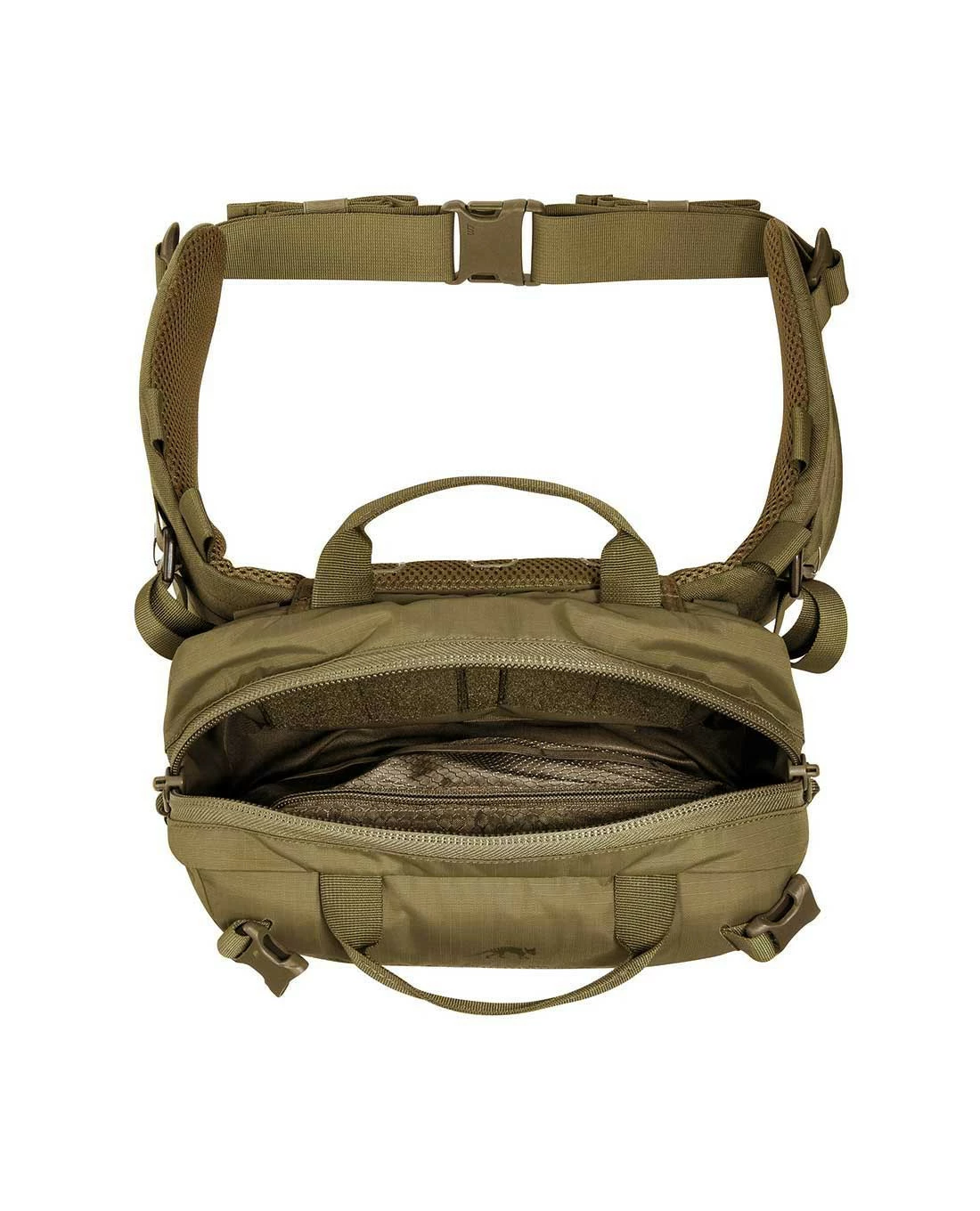 Für die smarte Nutzung der 5 Liter Gesamtvolumen sind im Inneren große Klett- und M.O.L.L.E Klettflächen angebracht. Je ein Reißverschlussfach vorne und eines hinten sind ideal für EDC und Dokument; das hintere Reißverschlussfach wird dabei zusätzlich mit einer Netztasche ergänzt, in der Kleinteile besonders schnell gesichtet werden können.