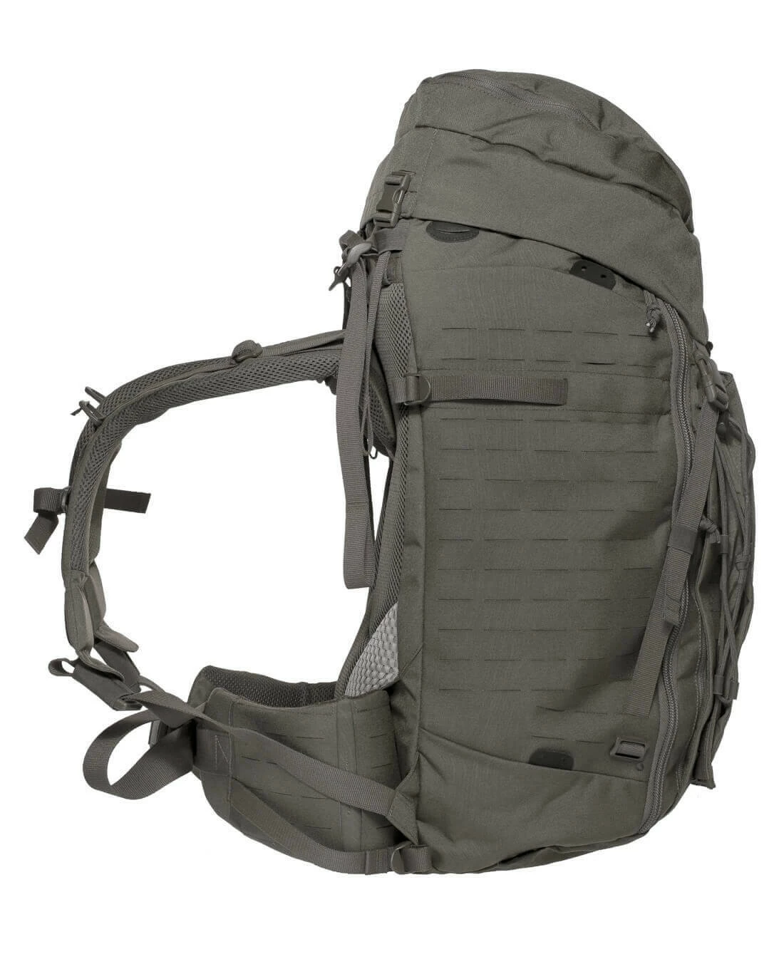 – Hauptfach komplett aufklappbar und mit Flauschklett und Laser Cut-M.O.L.L.E versehen