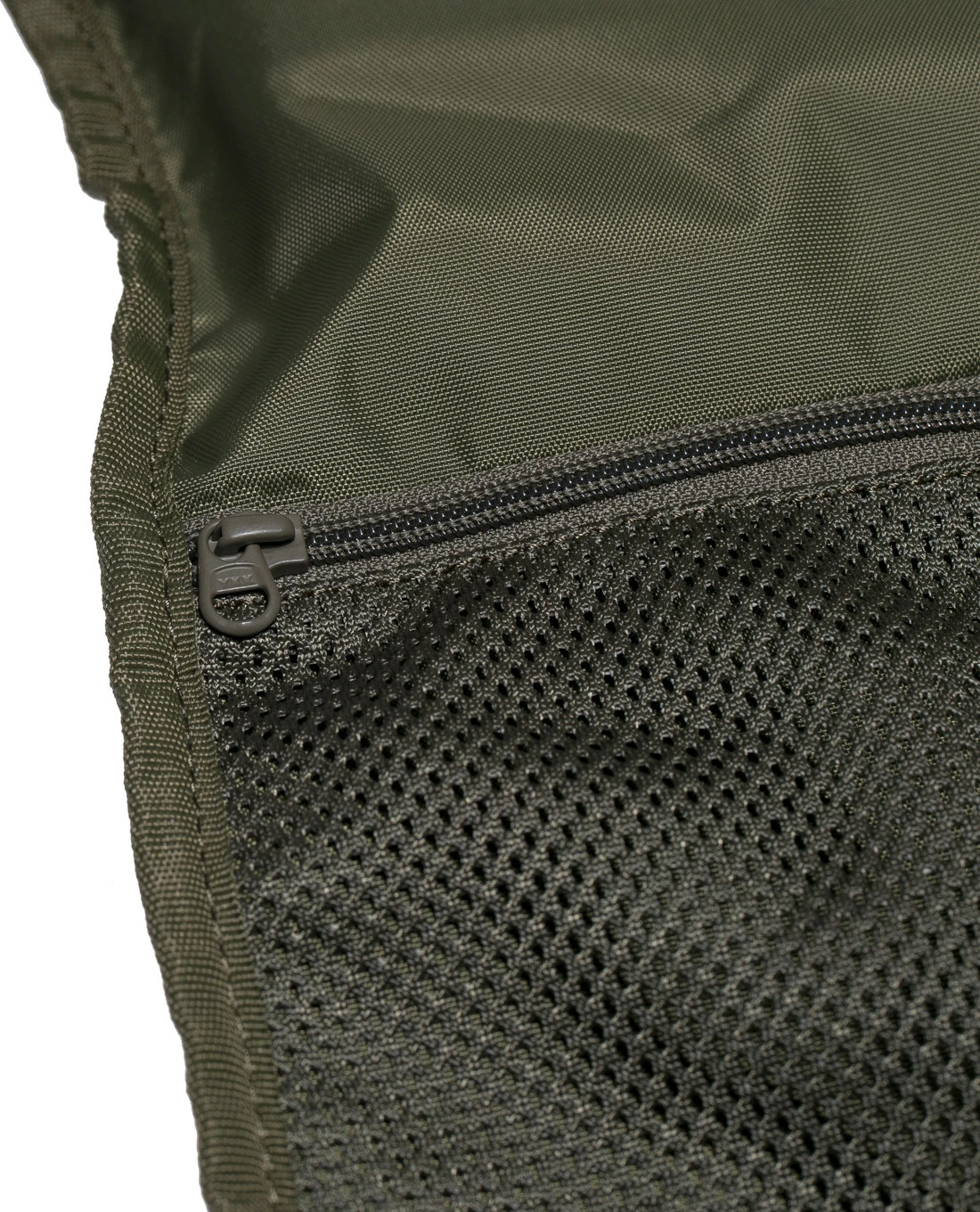 Auf der Vorderseite befindet sich eine funktionale Falttasche, die von der Hardshell über den ballistischen Helm alles aufnimmt. Dank des 550 Cords in Verbindung mit Cord Stoppern lässt sich die Größe variabel anpassen und die Ladung entsprechend sichern. Dank des großflächigen Einsatzes von Laser Cut Schlaufen gibt es nahezu unendliche Individualisierungsmöglichkeiten mittels M.O.L.L.E.-kompatibler Taschen und TT Tac Pouches.