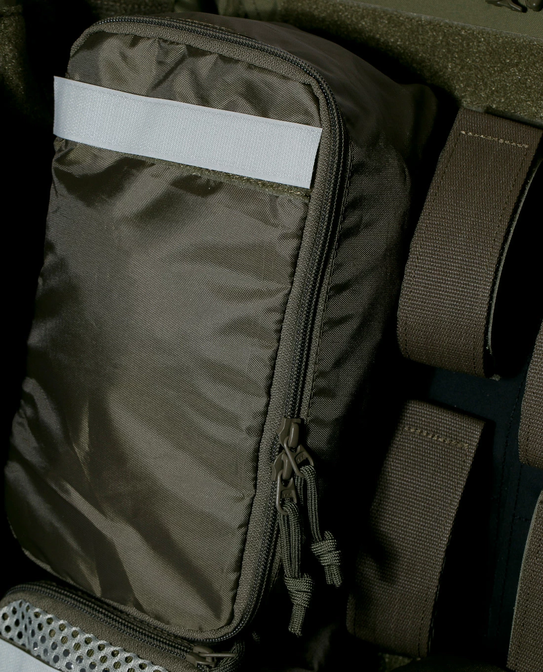 Das Hauptfach des Modular Pack 45 Plus lässt sich wie beim Modular Pack 30 mittels abschließbarer YKK Zwei-Wege-Zipper bis zum Boden öffnen und ist vollflächig mit Flauschklett besetzt. An der Rückseite und an den Seitenpanels sind zusätzlich Laser Cut Schlaufen in den Klett gefertigt. Es können sowohl Kletttaschen, als auch M.O.L.L.E. kompatibles Zubehör befestigt werden. Im Lieferumfang enthalten sind drei praktische, großvolumige Klettzubehörtaschen, zwei davon mit Meshfront, sowie einer universell verwendbaren Langwaffenhalterung.