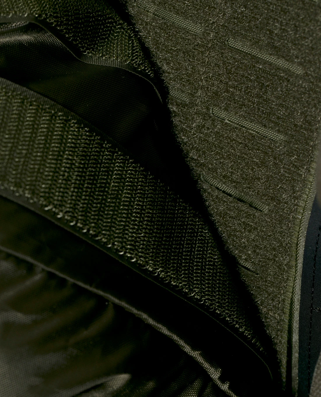 Die Entscheidung die klassischen M.O.L.L.E.-Schlaufen durch ein umlaufendes M.O.L.L.E. System in Laser Cut Ausführung zu ersetzen verleiht der Kontur des Rucksack ein unaufgeregtes Profil. Statt zusätzliches Material aufzunähen werden die Langlöcher beim Laser Cut in die CORDURA Außenschicht des Rucksacks eingebracht. Dies unterstreicht deutlich die verfolgte Low Profile Konzeption und spart außerdem Gewicht. Dabei steht es seinem klassischen Pendant in Puncto Robustheit und Funktionalität in Nichts nach.