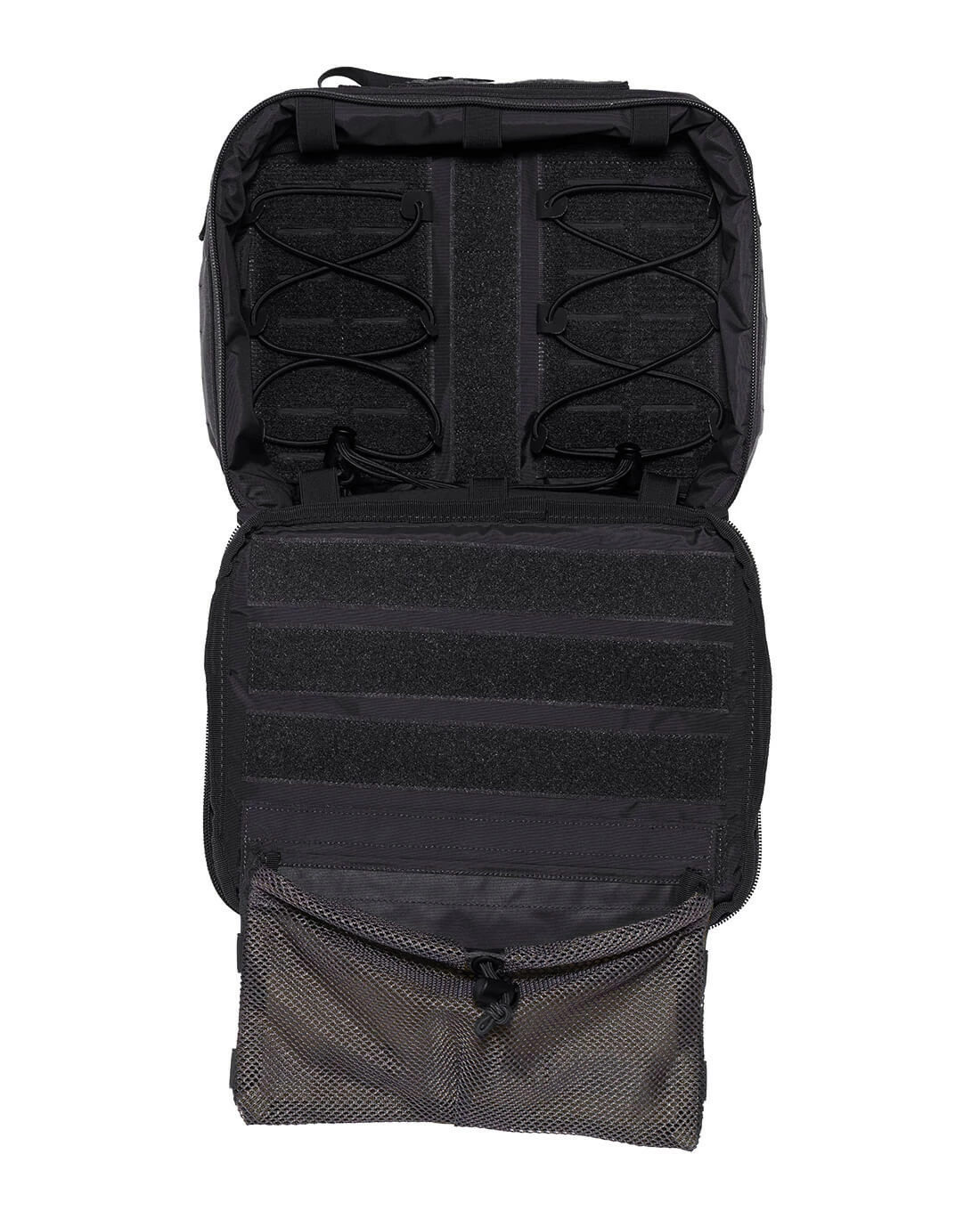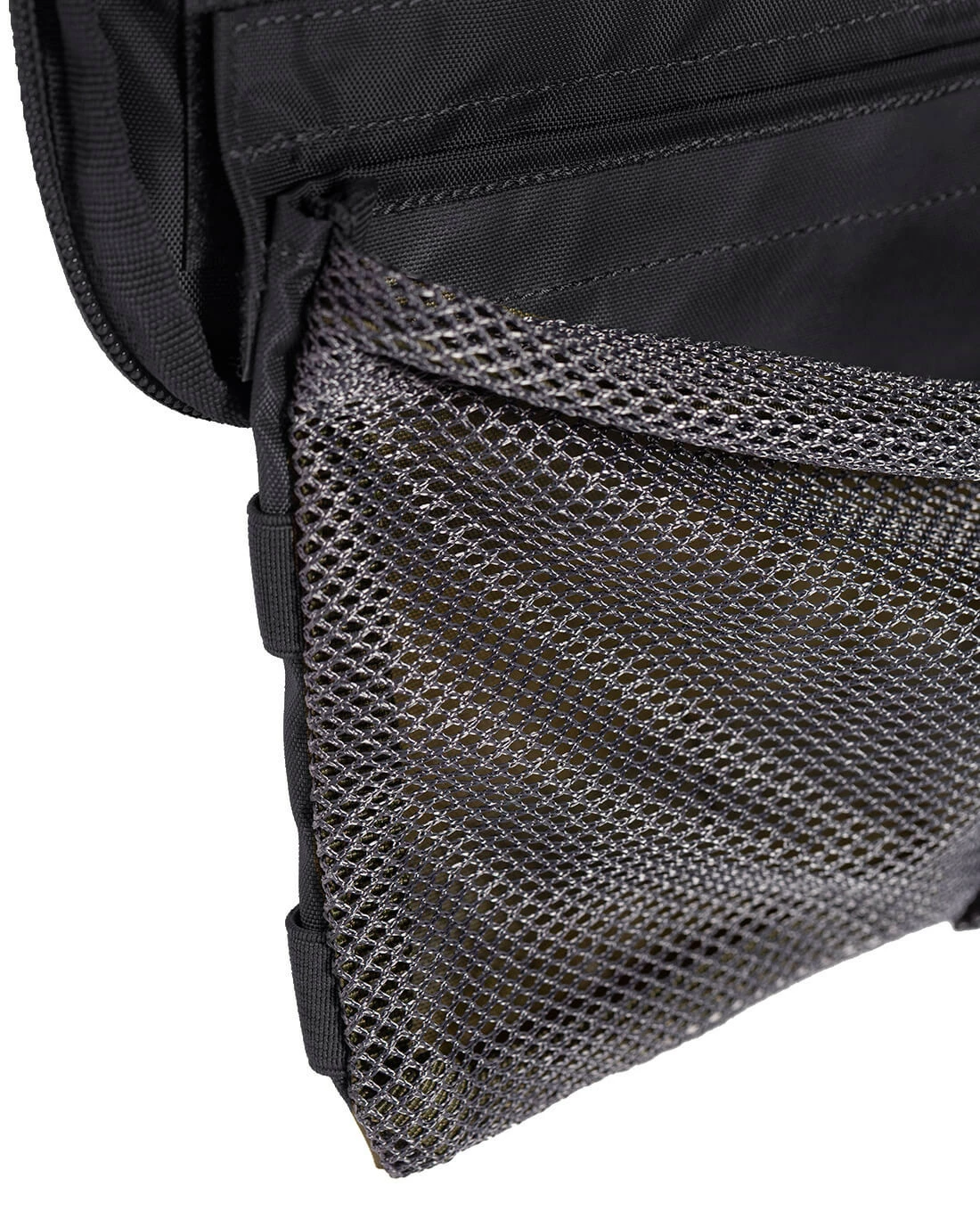 Der TT Modular Support Bag lässt sich einfach nach vorne öffnen und bietet auf der Innenseite M.O.L.L.E.-kompatible Klettflächen und Bungee-Cord zur individuellen Ausstattung der Tasche. Durch die smarte Innenaufteilung mit zahlreichen Befestigungsmöglichkeiten erlaubt der TT Modular Support Bag eine optimale Übersicht und beispiellose Ordnung. Hier finden medizinische Komponenten einen idealen Platz. Natürlich kann der TT Modular Support Bag auch als klassischer Go Bag oder auch Get Home Bag mit diversen Tools und verschiedener Ausrüstung genutzt werden. Auf Seiten und Front befinden sich bewährte M.O.L.L.E.-Schlitze im Lasercut Design, um auch hier benutzerdefinierte Erweiterungen zu befestigen.