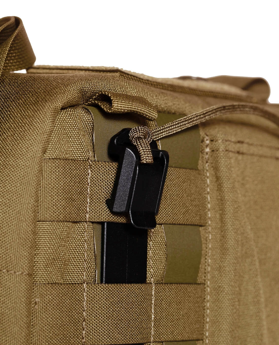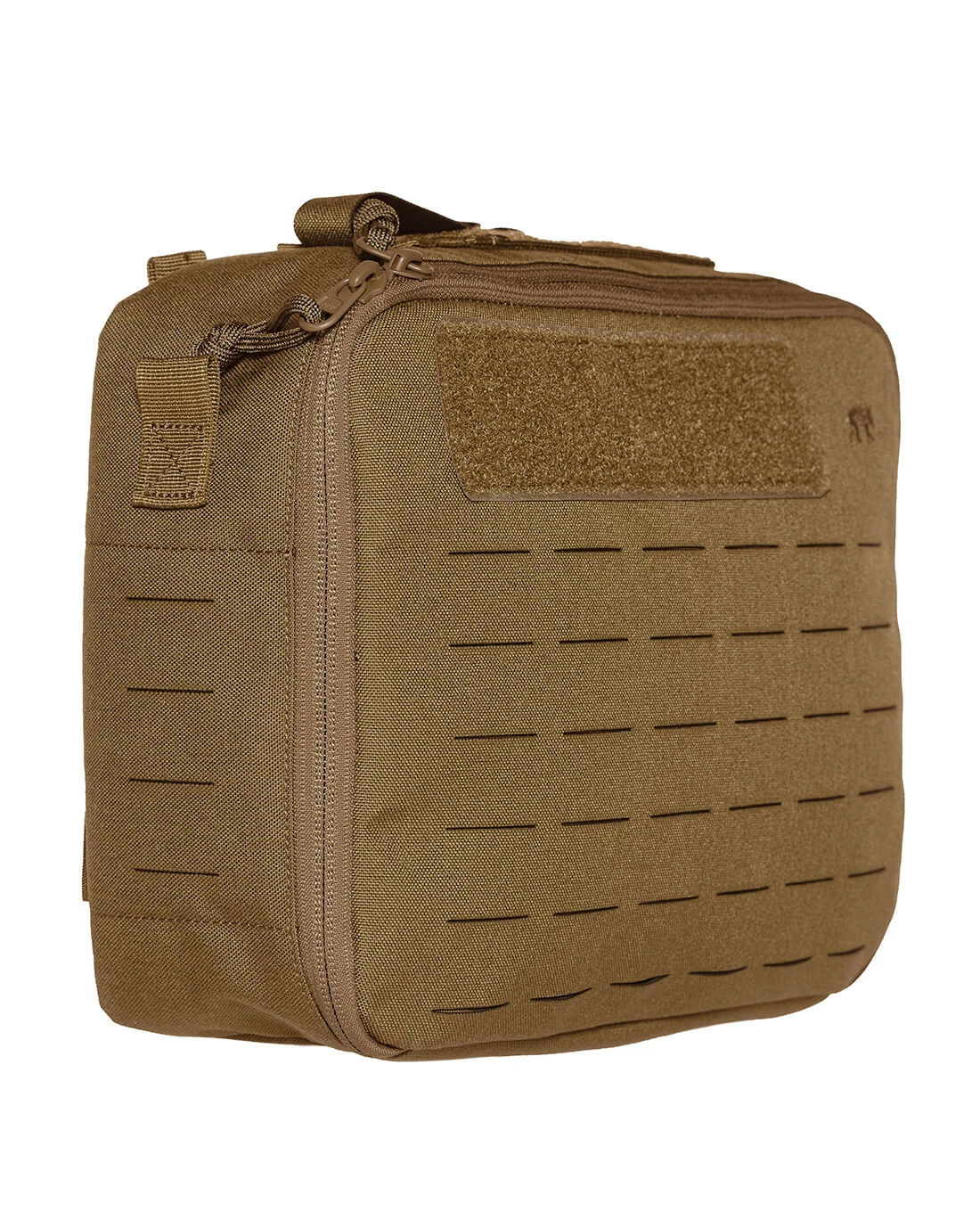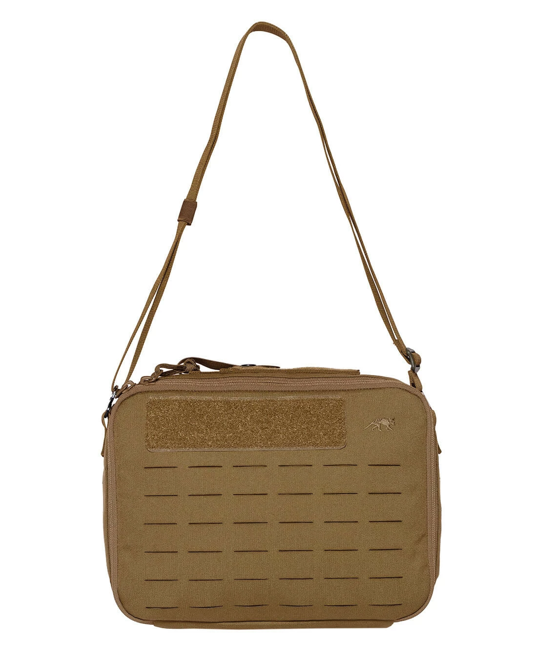 Auf den Seiten und der Front befinden sich bewährte M.O.L.L.E.-Schlitze im Lasercut Design, um auch hier individuelle Erweiterungen befestigen zu können. Der längenverstellbare Schultergurt kann bei Bedarf einfach abgenommen und bequem verstaut werden. Auf der Rückseite kommt das neue TT Schnelllösesystem in Form der Tasmanian Tiger Molle Sticks zur Anwendung. So kann die Tasche in Sekundenschnelle und mir nur einer einzigen Bewegungen von Plattenträgern und anderen Plattformen geborgen werden.