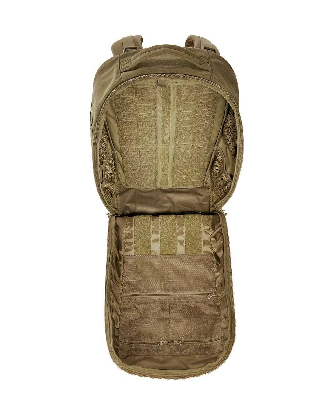 Der Rucksack fasst 28 Liter Volumen und misst 52 x 30 x 14 cm. Ein langer Reißverschluss sorgt dafür, dass das große Hauptfach gut erreicht werden kann und eine übersichtliche Einordnung auch von EDC Teilen möglich ist. Vier seitliche kleine Netztaschen sind für kleinere Teile vorgesehen, außerdem ist die Innenwand mit einer M.O.L.L.E-Klettfläche ausgestattet.
