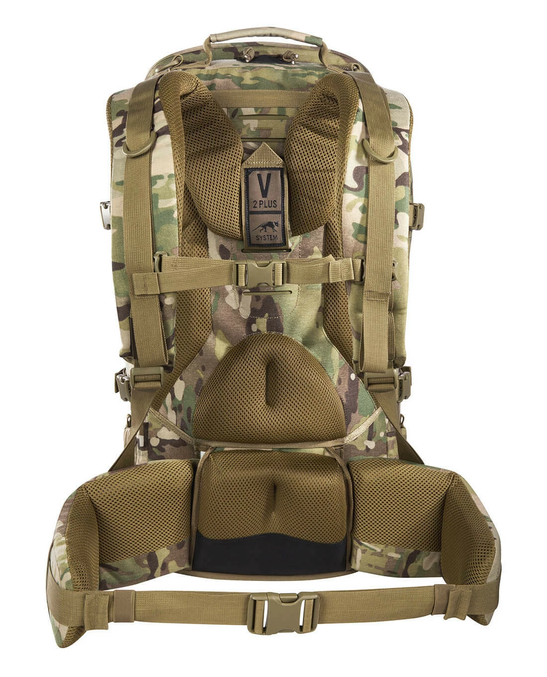 Das TT V2 Plus-System ist ein größenverstellbares Tragesystem für mittlere bis hohe Lasten, das sich individuell auf die Rückenlänge des Nutzers einstellen lässt. Zwei zu einem umgekehrten „V“ angeordnete Aluminiumstäbe bilden mit zwei lastabstützenden, glasfaserverstärkten Kunststoffstäben die zentrale statische Einheit. Der abnehmbare Hüftgurt, der sich auch als taktischer Warrior Belt nutzen lässt, verteilt schwere Lasten optimal und unterstützt seinen Träger auf langen Patroullien und in schwierigem Gelände.