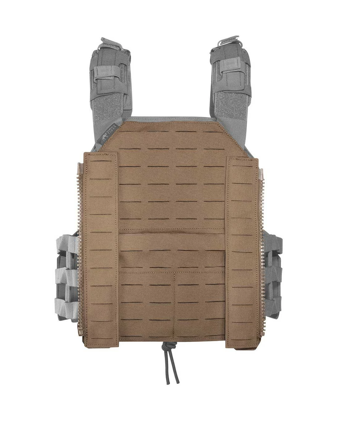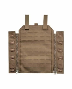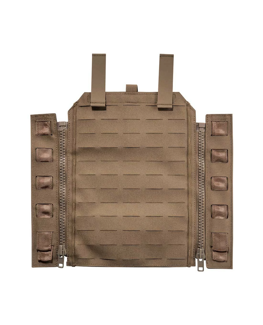 Das Wechselpanel aus Cordura 700 den hat die Maße 31 x 25 cm und wird über die Reißverschlüsse an den Außenseiten am Plattenträger befestigt. Natürlich können auch alle anderen, gängigen Reißverschluss-Systeme genutzt werden; der benötigte Reißverschluss-Typ ist der Typ Vislon in Stärke #10 und Länge 24cm.