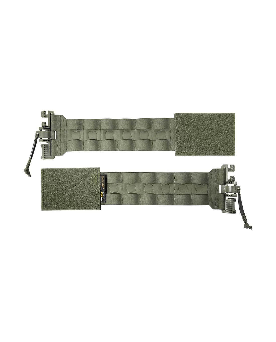 Der TT Reinforced Cummerbund ist ein optionales Ersatz-Element zum TT Plate Carrier QR LC. Der Cummerbund ersetzt die Standard-Seitenteile des Plattenträgers: Er besteht aus einem Set polyamidverstärkter, versteifter Seitenteile, die für mehr Stabilität und schwerere Beladung eingesetzt werden können. Auf der Innenseite ist eine Flauschfläche eingearbeitet. Beide Seitenteile messen je 10 x 43 cm und sind mit 2 Reihen M.O.L.L.E-kompatibler Gurtbandschlaufen ausgestattet, die in der Höhe wie 3 genutzt werden können. Am Plattenträger werden die beiden Teile mit QR 2M ROC 80 mm-Schnallen befestigt.