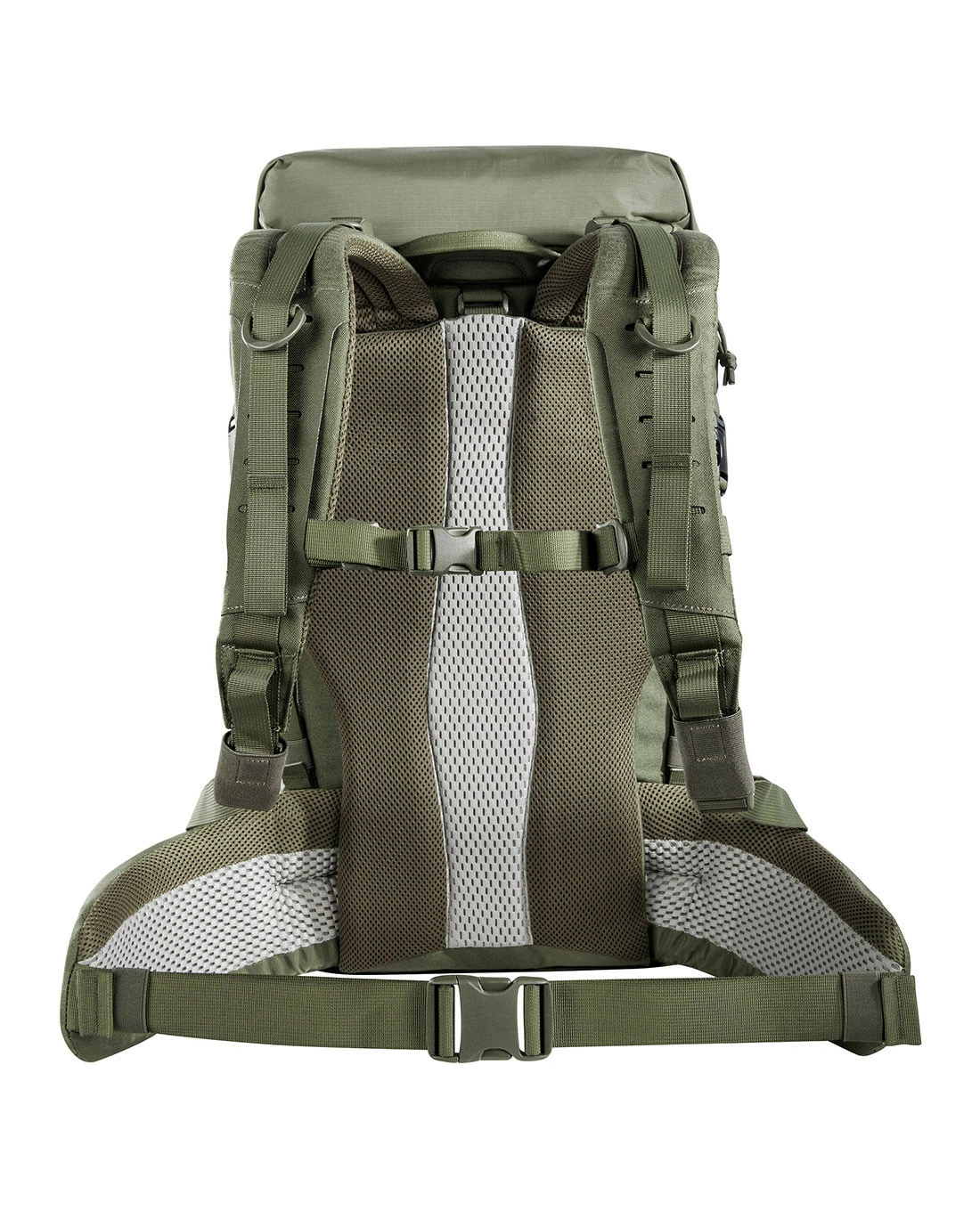 Der Sentinel 40 ist mit einem Padded-Back Tragesystem ausgestattet, das den Rücken unterstützt und vor im Hauptfach unsanft verpackten Kanten schützt. Die gepolsterten Schultergurte können mit einem Brustgurt stabilisiert werden. Die Hüftflossen mit M.O.L.L.E-System in Lasercut-Ausführung können abgenommen werden.