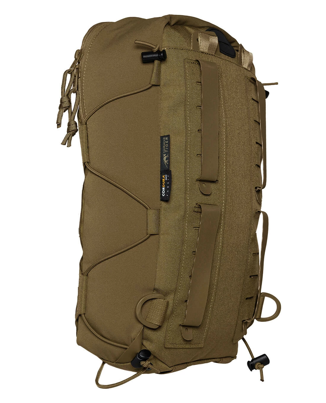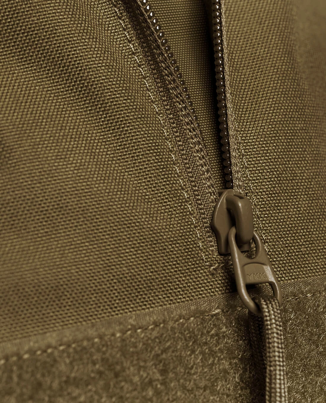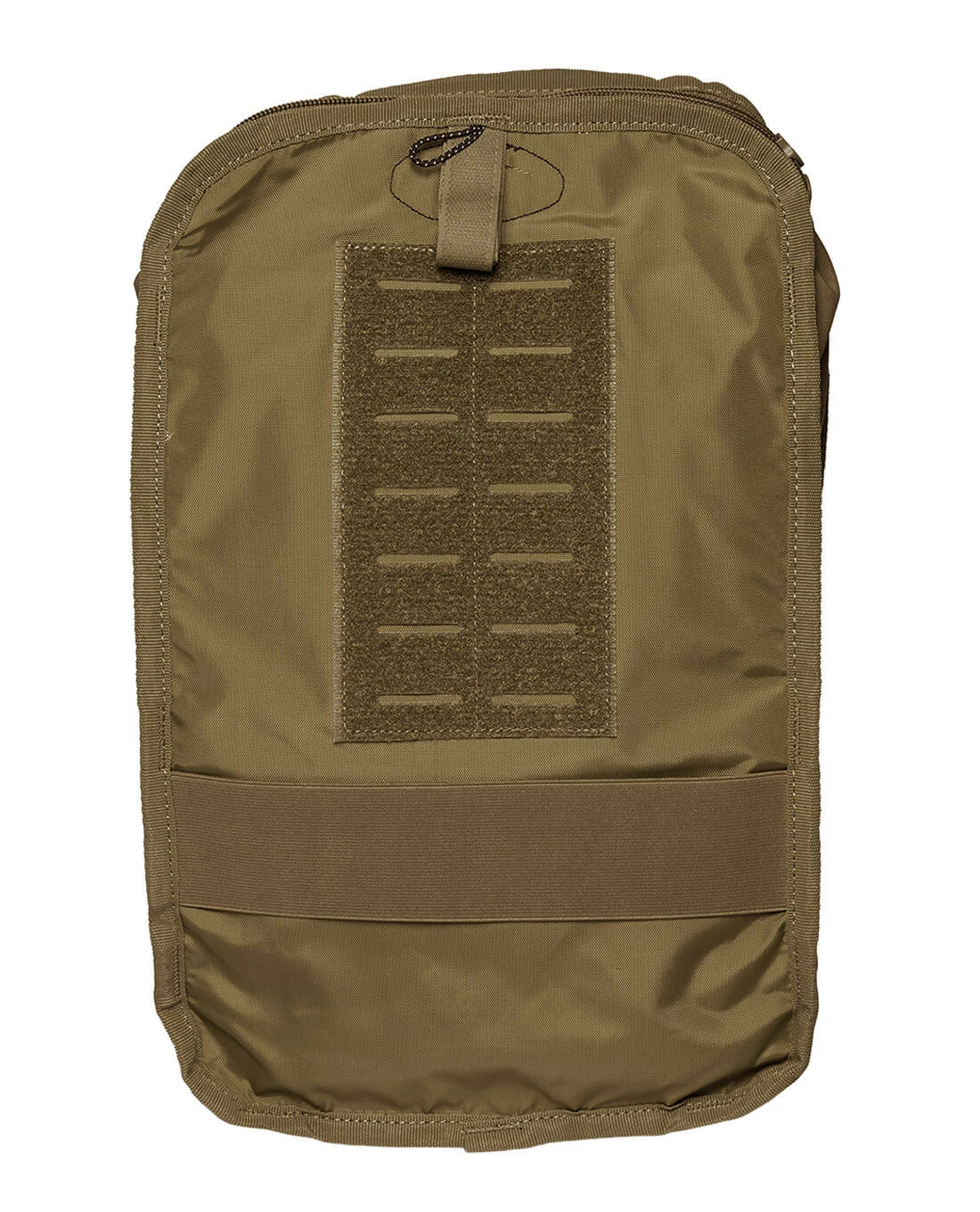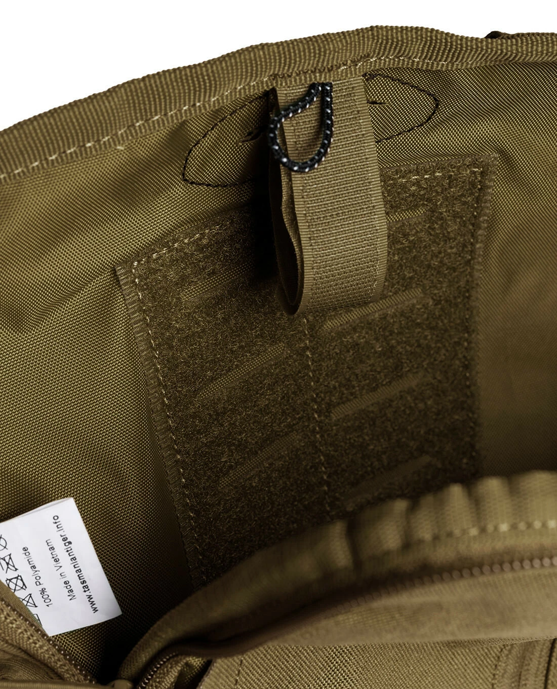 Die Tasche wird aus CORDURA 700 den gefertigt, das sich dank elastischen Materials an den Seiten bei Bedarf praktisch komprimieren lässt. So ist die Tasche je nach der Menge des Inhalts mit dem angebrachten Bungee-Cord flach zusammenzuziehen. Das große Hauptfach ist in kluge Abteile und in verschiedene Aufbewahrungsoptionen unterteilt, so dass es bestmöglich nutzbar ist: Innen befindet sich M.O.L.L.E.-Klett sowie eine Netztasche zur Aufbewahrung von Kleinteilen. Eine Trinksystemvorbereitung ist ebenfalls im Inneren integriert und mit dem notwendigen Ausgang für Schläuche oder auch Antennen ausgestattet. Elastische Schlaufen und Gurtbänder sind weiterhin für die Befestigung von Kleinteilen und insbesondere von medizinischem Equipment vorgesehen. Ein nahezu vollständig umlaufender Reißverschluss und ein weiterer auf der Front erlauben blitzschnellen Zugriff auf alle geführten Komponenten.