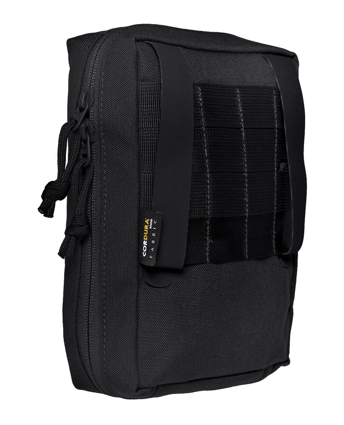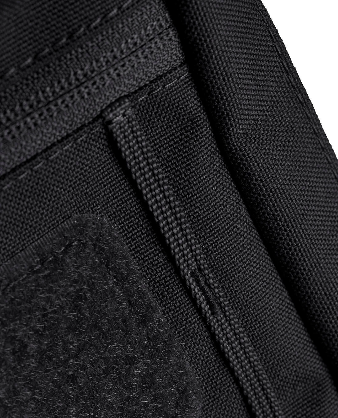 Im Inneren ist es dann einfach, sich schnell zurecht zu finden: Dank zahlreicher elastischer Schlaufen, dank eines Gurtbandsystems und eines Flauschpanels können Teile gesichert am Platz gehalten werden. Eine Mesh-Tasche dient zusätzlich dazu, sensible Teile zu schützen und sichtbar zu platzieren. An der Außenseite hat eine flache Reißverschlusstasche vor allem die Funktion, schnell griffbereites Equipment zu sichern. Die Tac Pouch 6.1 wird aus CORDURA 700 den gefertigt und vertikal befestigt; dazu werden vier M.O.L.L.E. Schlaufen benötigt.