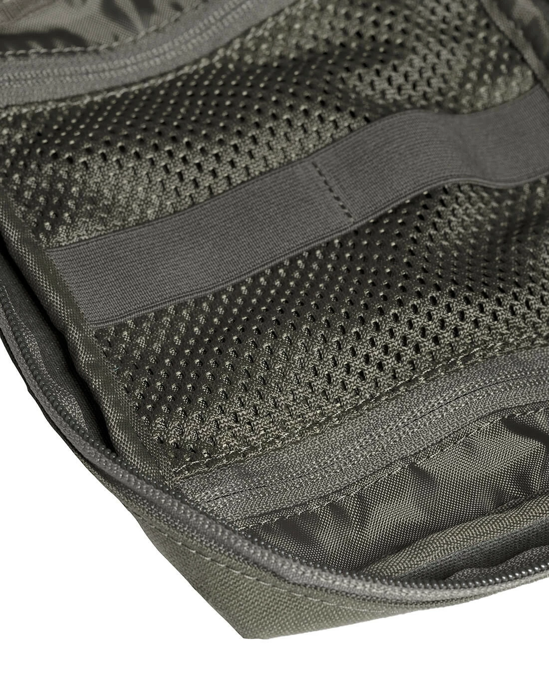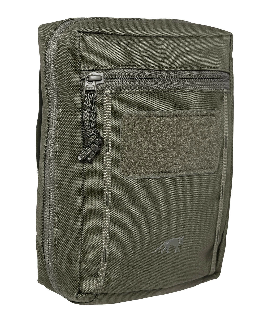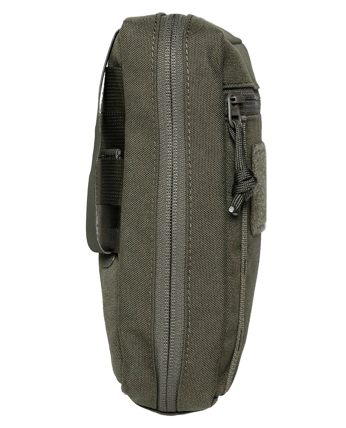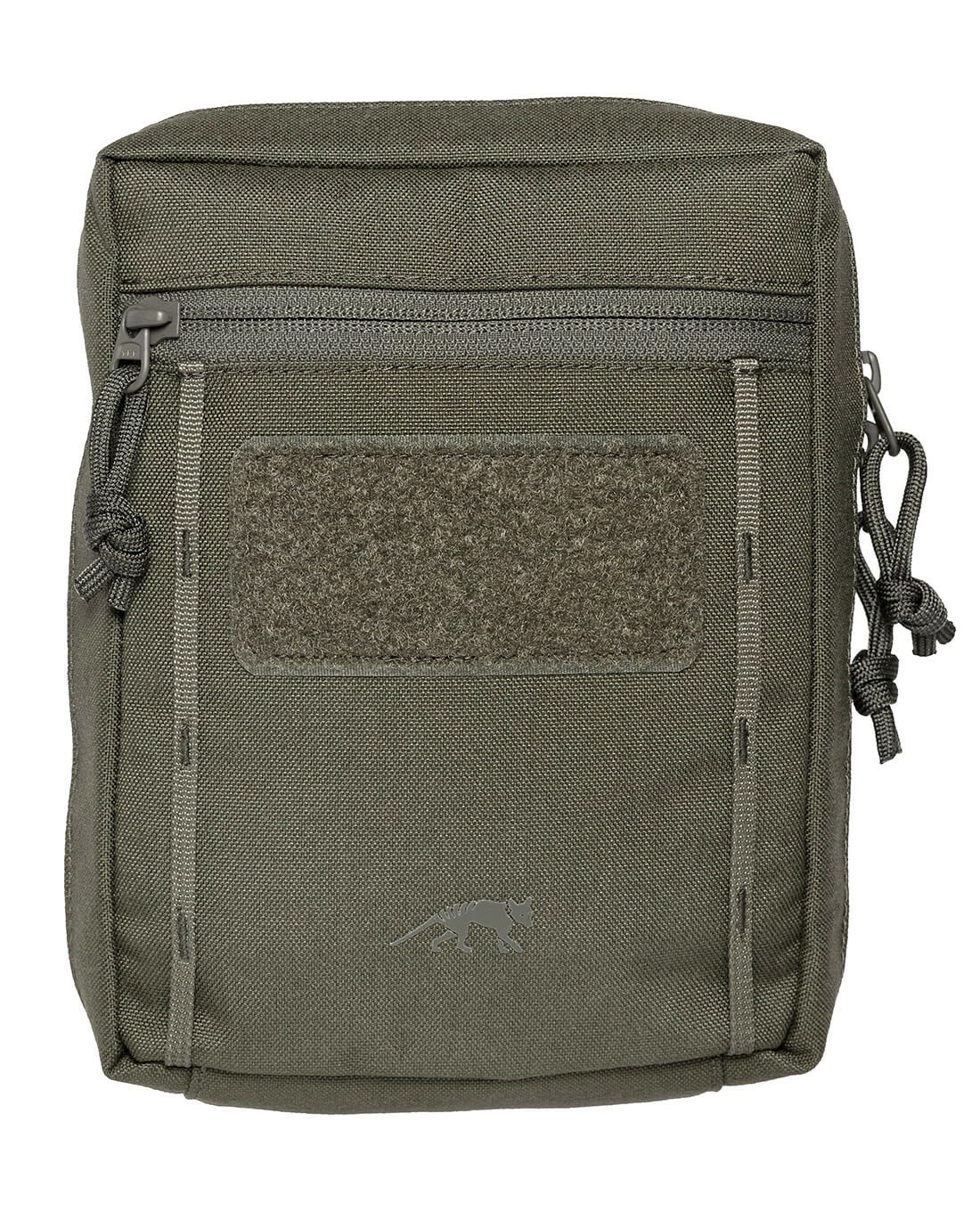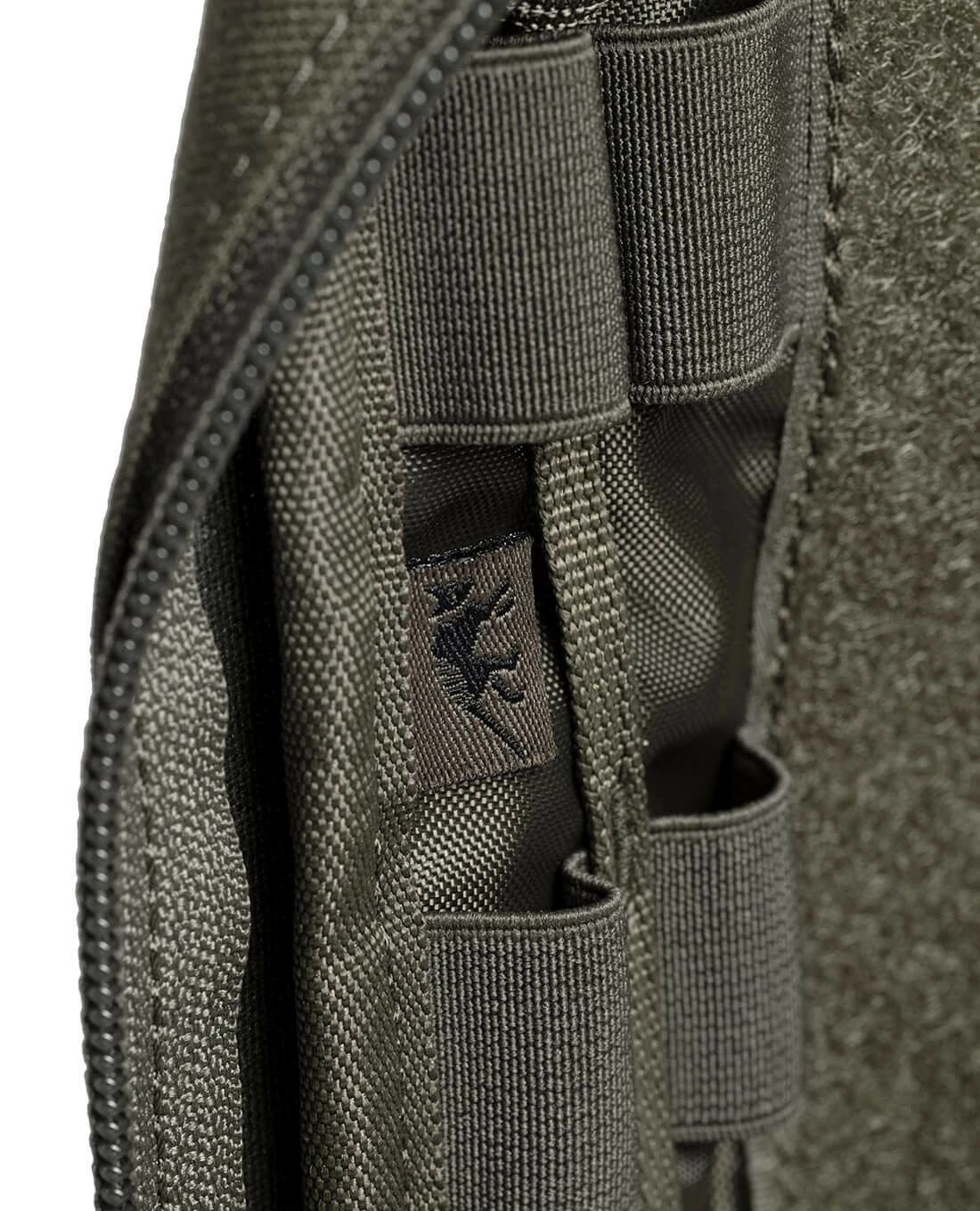 Die TT Tac Pouch 6.1 IRR ist eine taktische Zubehörtasche mit den Maßen 20 x 15 x 6 cm, die vertikal und mit vier M.O.L.L.E.-Schlaufen befestigt werden kann. Die Tasche in steingrau-oliv verfügt über einen langen Reißverschluss, der weites Öffnen ermöglicht. So kann gut auf das Innere zugegriffen werden. Zur besseren Organisation ist eine flache Mesh-Tasche eingesetzt, außerdem befindet sich im Inneren eine Flauschfläche durch die weitere Gear eingeklettet werden kann.