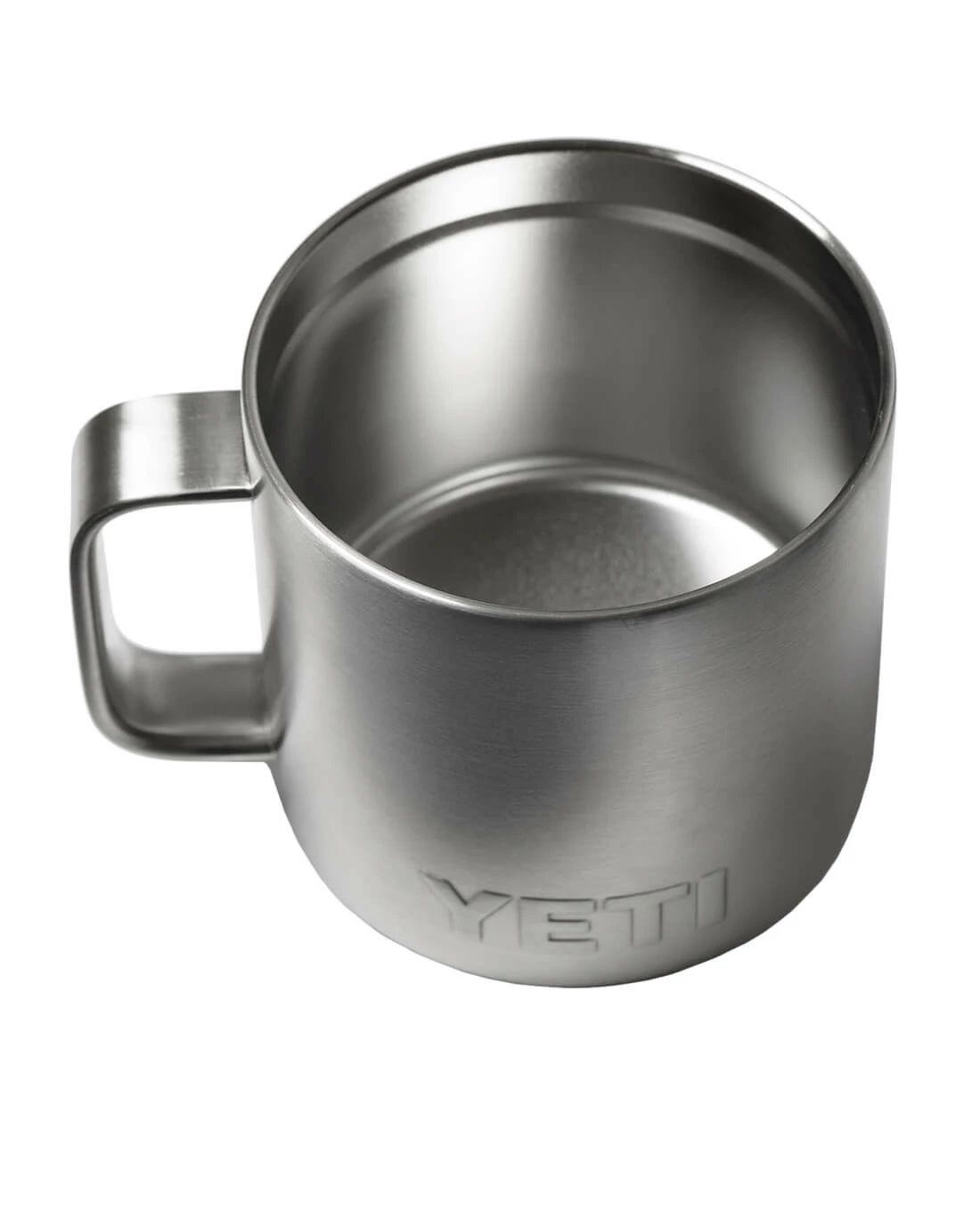 Der YETI Rambler 14 oz. Mug aus Edelstahl ist ein moderner Kaffeepott, der alle anderen in den Schatten stellt. Der angeschweißte Henkel bietet Platz für drei Finger und lässt sich damit auch bei starkem Wellengang sicher greifen. Die 414 ml Volumen bieten ausreichend Platz für einen großen Kaffee, eine leckere Suppe oder auch ein reichhaltiges Müsli.