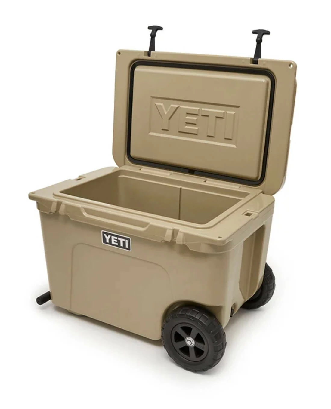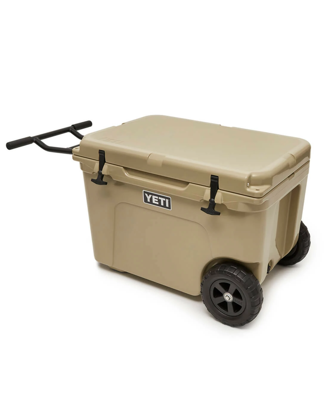 Mit der Tundra Haul in der Farbe Tan vereint YETI die herausragenden Features der Tundra Serie mit maximal vereinfachtem Handling. Dank unverwüstlicher Neverflat Bereifung und Tragegriff lässt sich die große Kühlbox auch vollbeladen komfortabel von einer Person über eine Vielzahl von Untergründen ziehen.