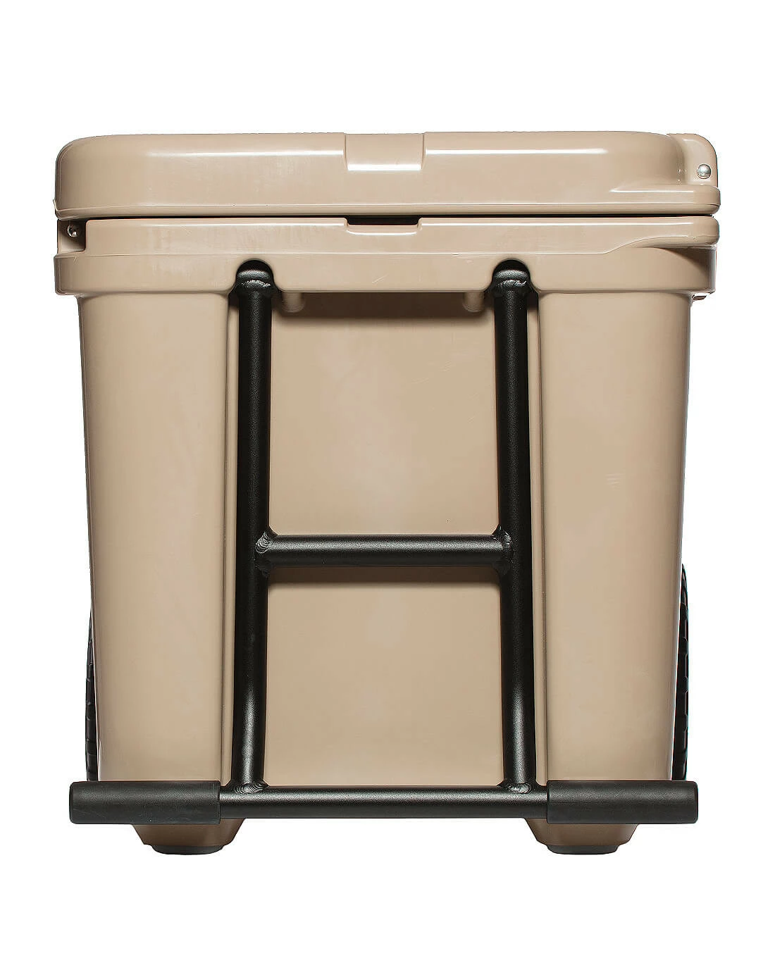 Auch größere Distanzen, wie z.B. vom Parkplatz zum Anleger oder der Jagdhütte lassen sich somit ohne großen Aufwand zurücklegen und das nervige Geschleppe entfällt komplett. Das geschweißte Strongarm Zuggestänge aus Aluminium ist leicht, steif und kann wahlweise rechts oder links gegriffen werden. Die seitlich versetzten, gummierten Griffflächen liegen angenehm in der Hand und sorgen dafür, dass man entspannt neben dem Cooler laufen kann. Das Gestänge kann eingefaltet werden und liegt sauber am Tundra Haul an.